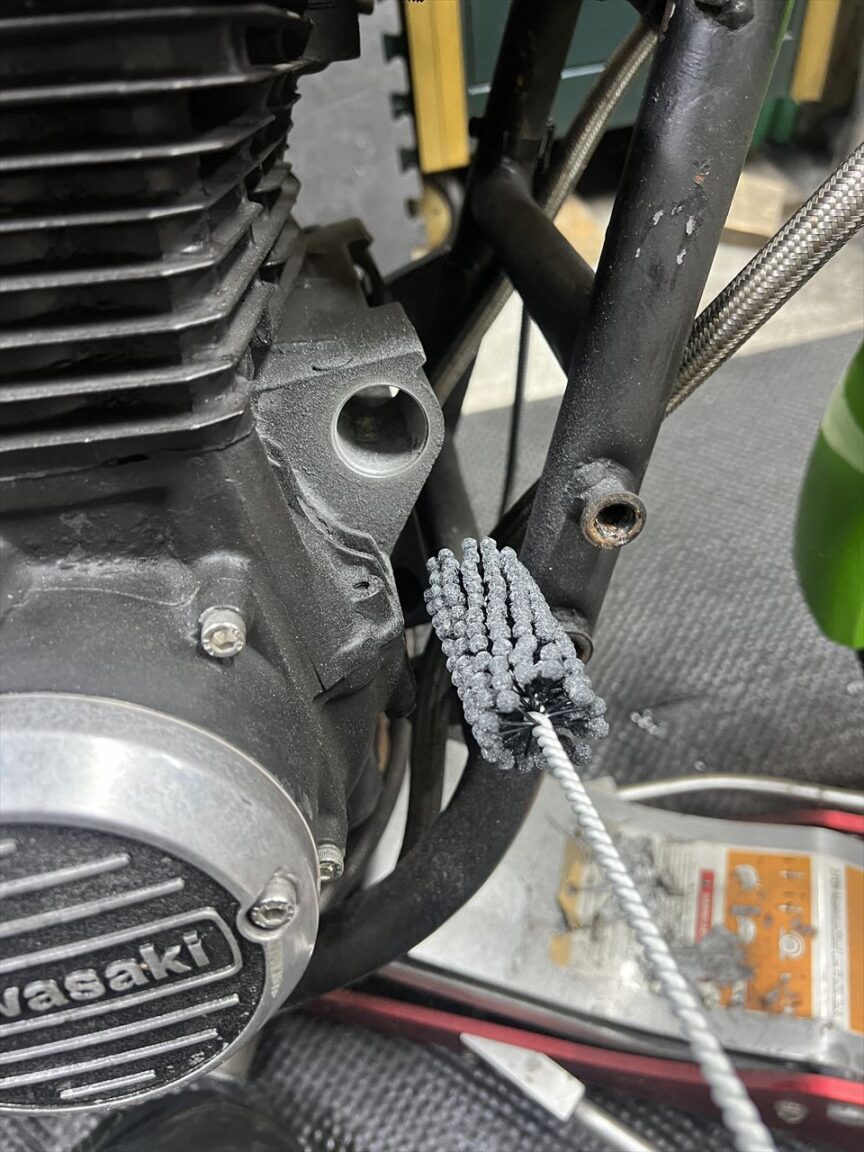 エンジン側のホール内の汚れを掃除します。