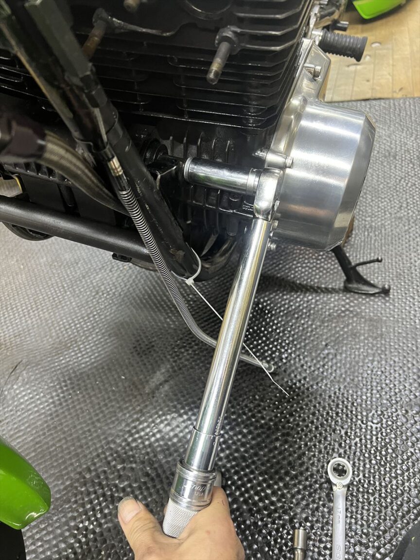 エンジンマウントを規定トルクで締め付けます。