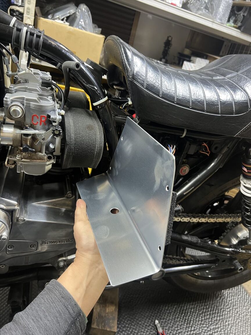 MOSFET型レギュレーターは、バッテリーケース前の既存ネジ穴に取り付けます。