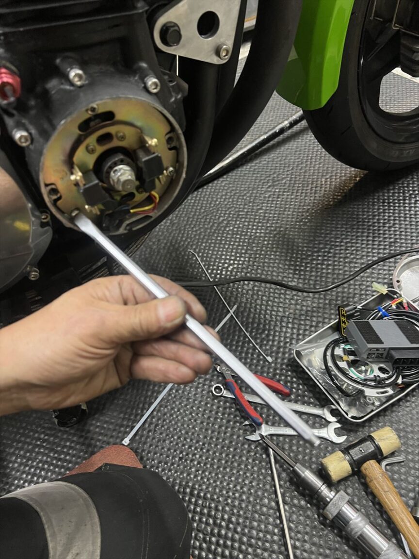 SP2用ピックアップコイルとトリガーを取り付けます。イニシャルは規定の10°進角の位置です。