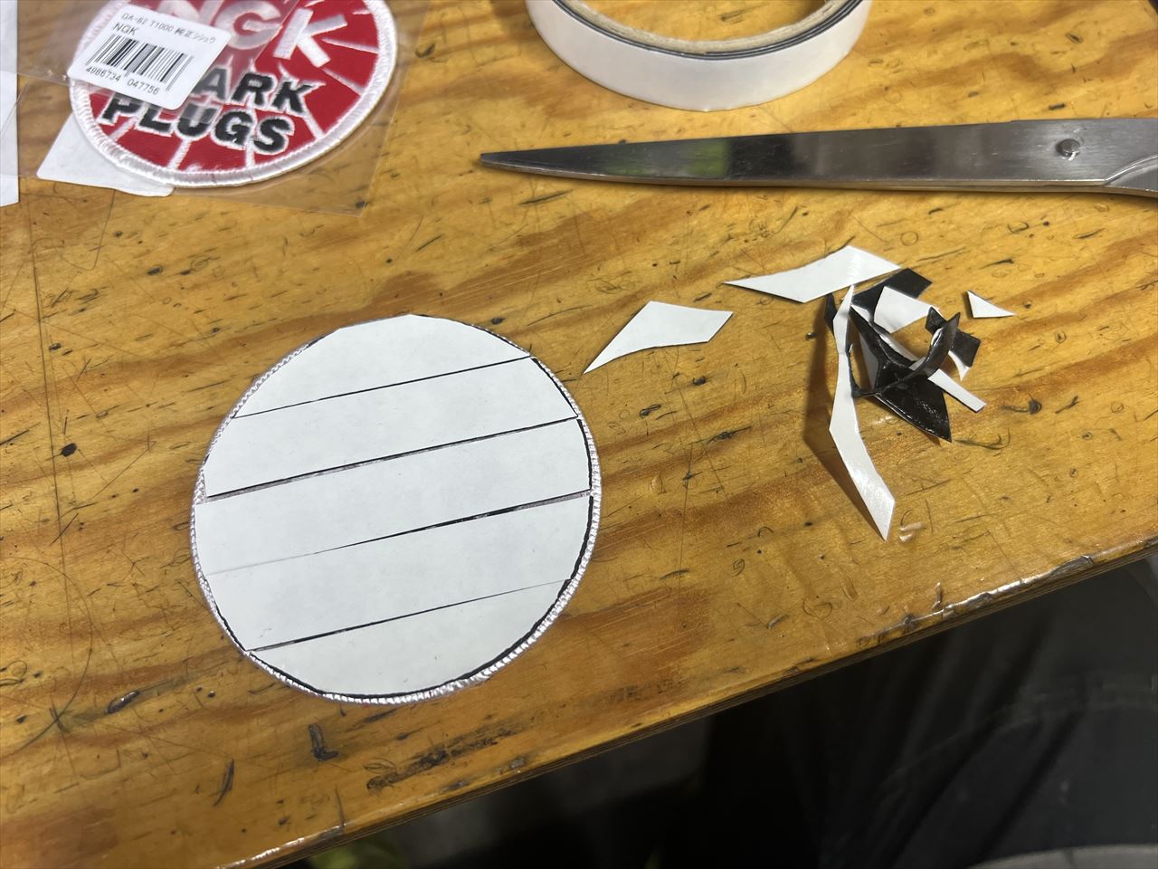 ワッペン裏面に両面テープを貼り、形を整えます。