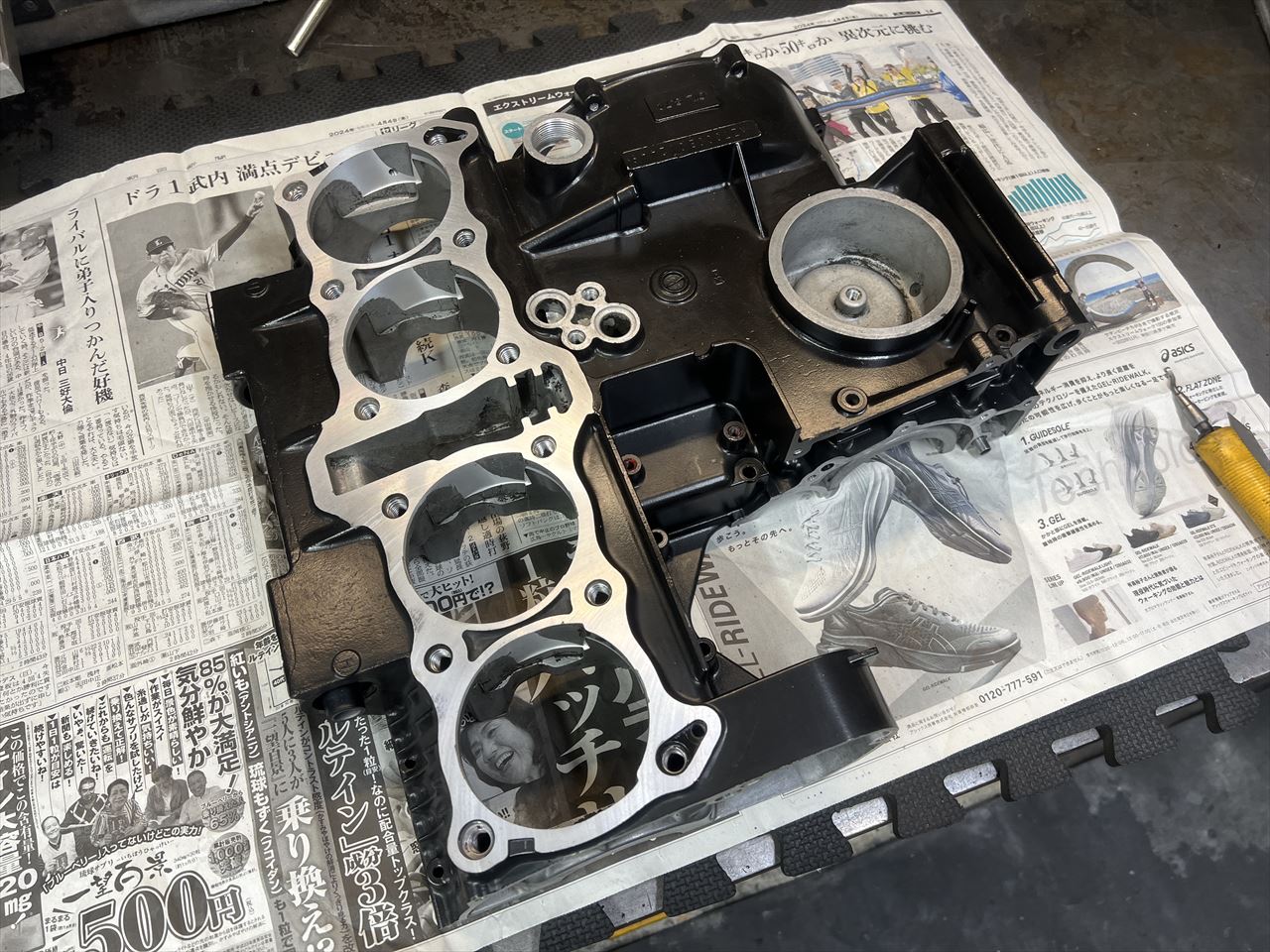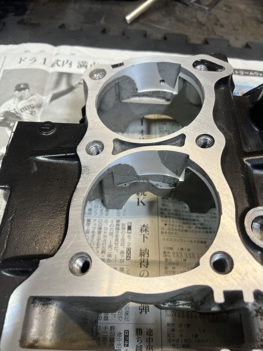φ76ミリビッグボアと肉厚のあるICBMのアルミスリーブに合わせ、クランクケースボーリングも実施しています。デッキ面の荒れもあったので今回ケース上面面研も追加しました。