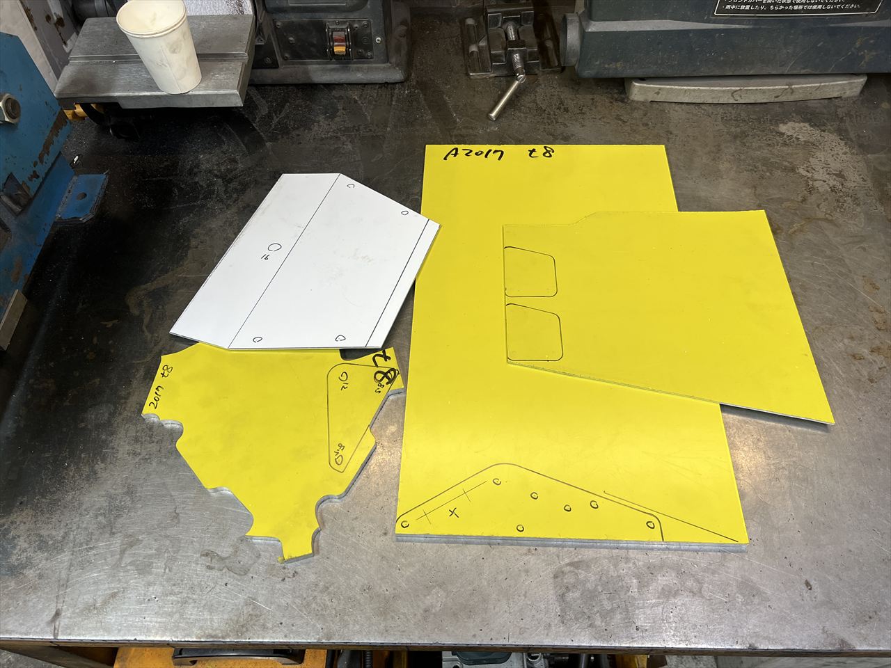 画僧にあるのはステッププレート左右、ウオタニSP2コイル用ステー2枚、キャブ後方隔壁です。それぞれジュラルミン板の8ミリ、3ミリ、1.5ミリから切り出しています。