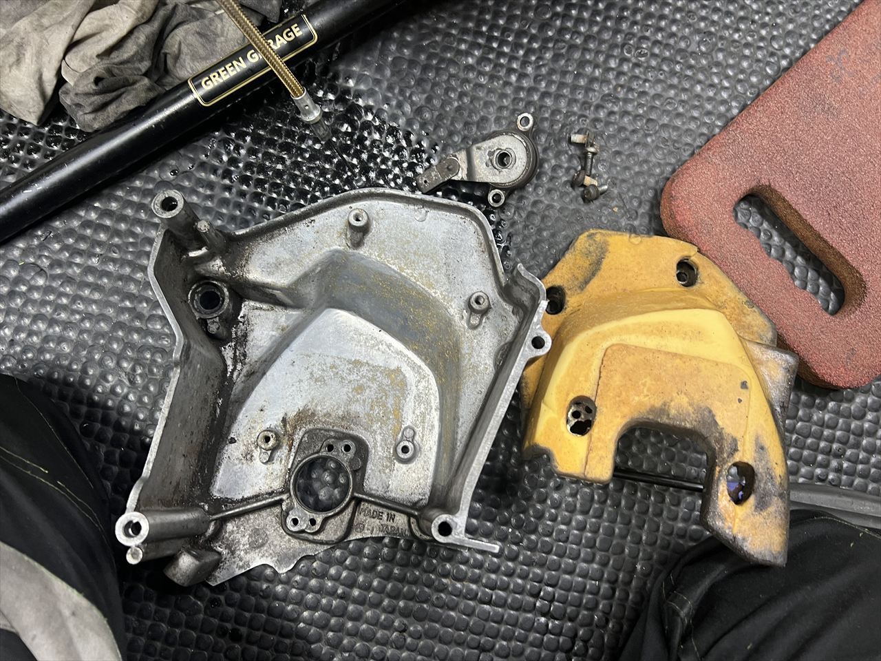 スプロケカバーはポリッシュするので、一旦裏の吸音材を外します。