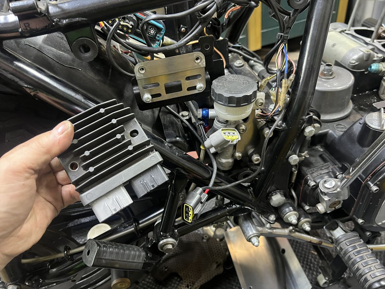 ステーターコイルからの配線を外すには、レギュレーターまで外すレイアウトになっていました。