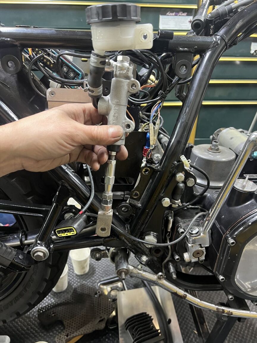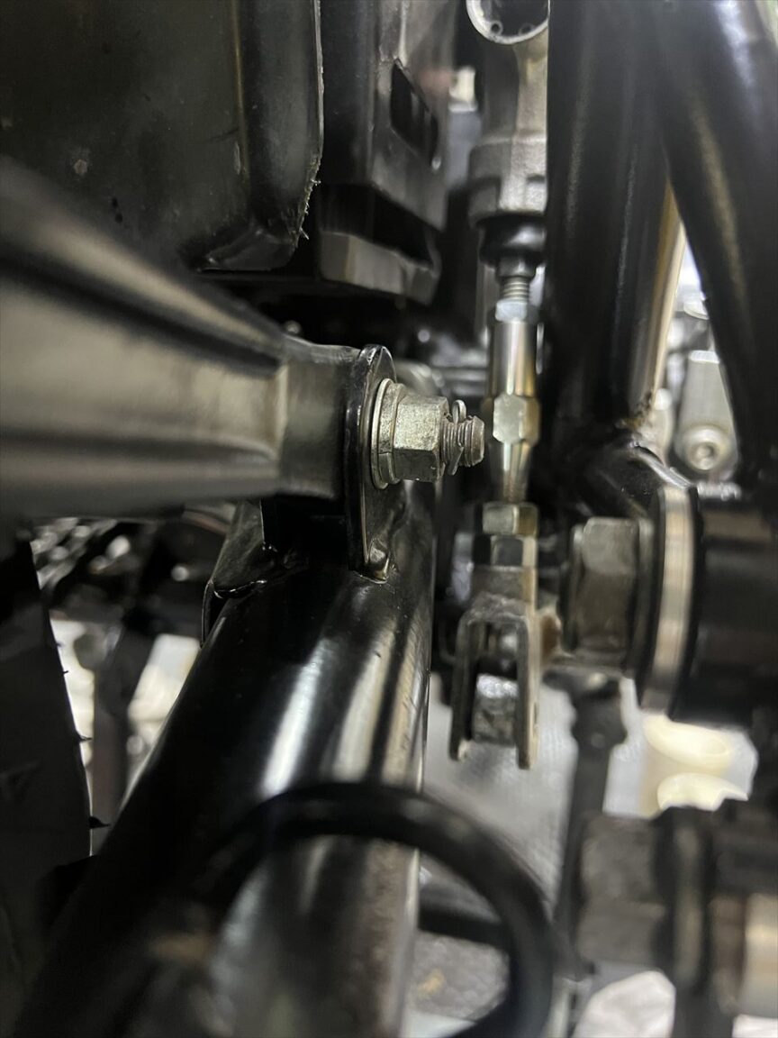 この状態でプッシュロッドは真っ直ぐになりました。フレームへの干渉も無いので、このアライメントを優先すべきです。