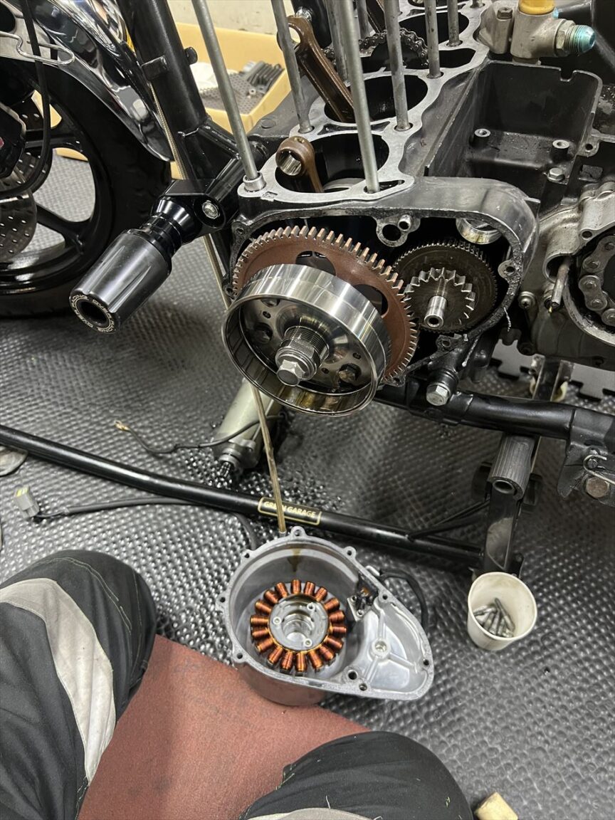 ジェネレーターカバーを外します。薄型ジェネレーターになっていますね。