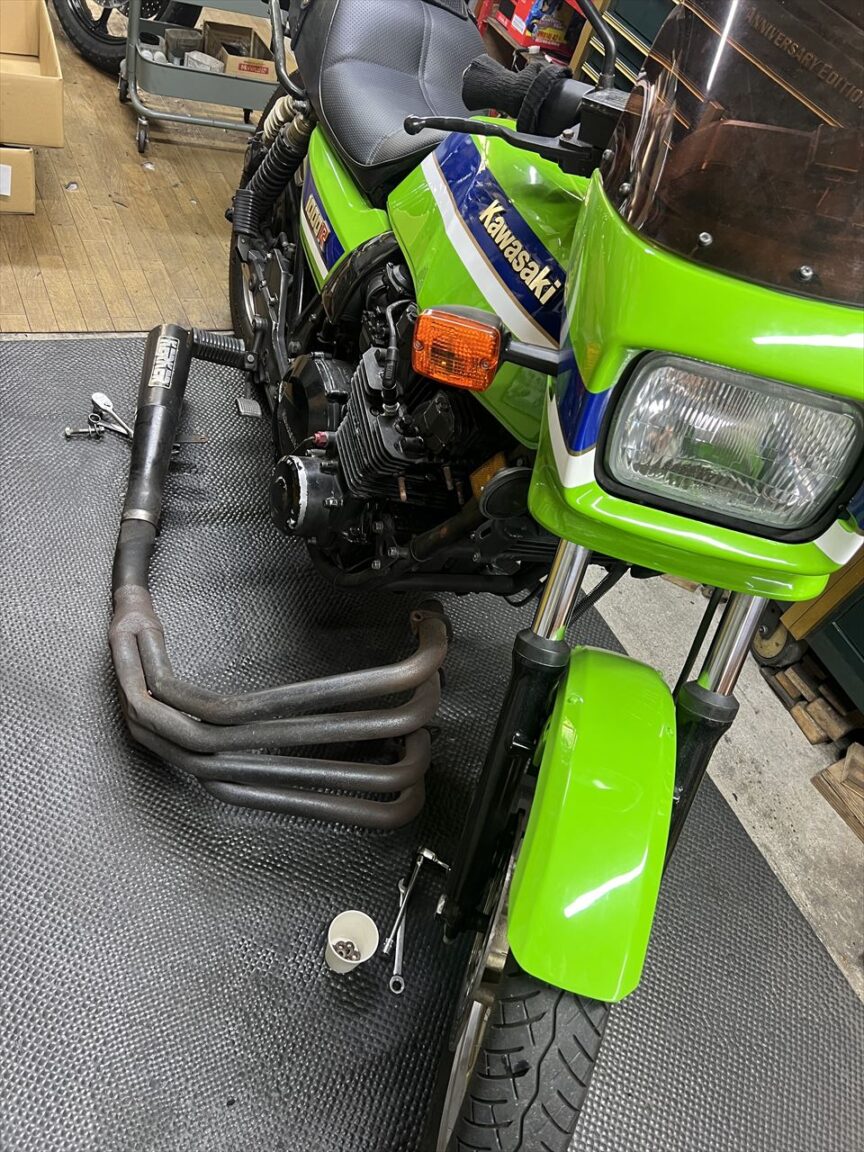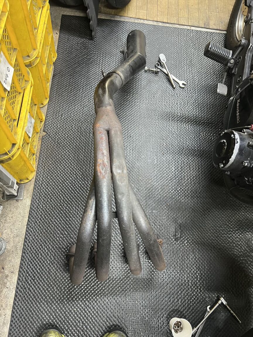 KERKERマフラーはだいぶ錆があり、底打ちもかなりありますね。