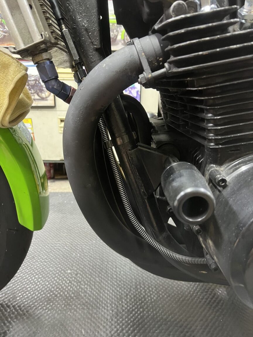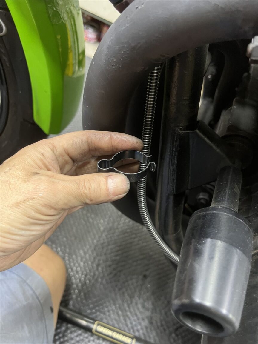 クランプ位置は、ケーブルがエキパイに接触しないよう、位置を調整して取り付けます。
