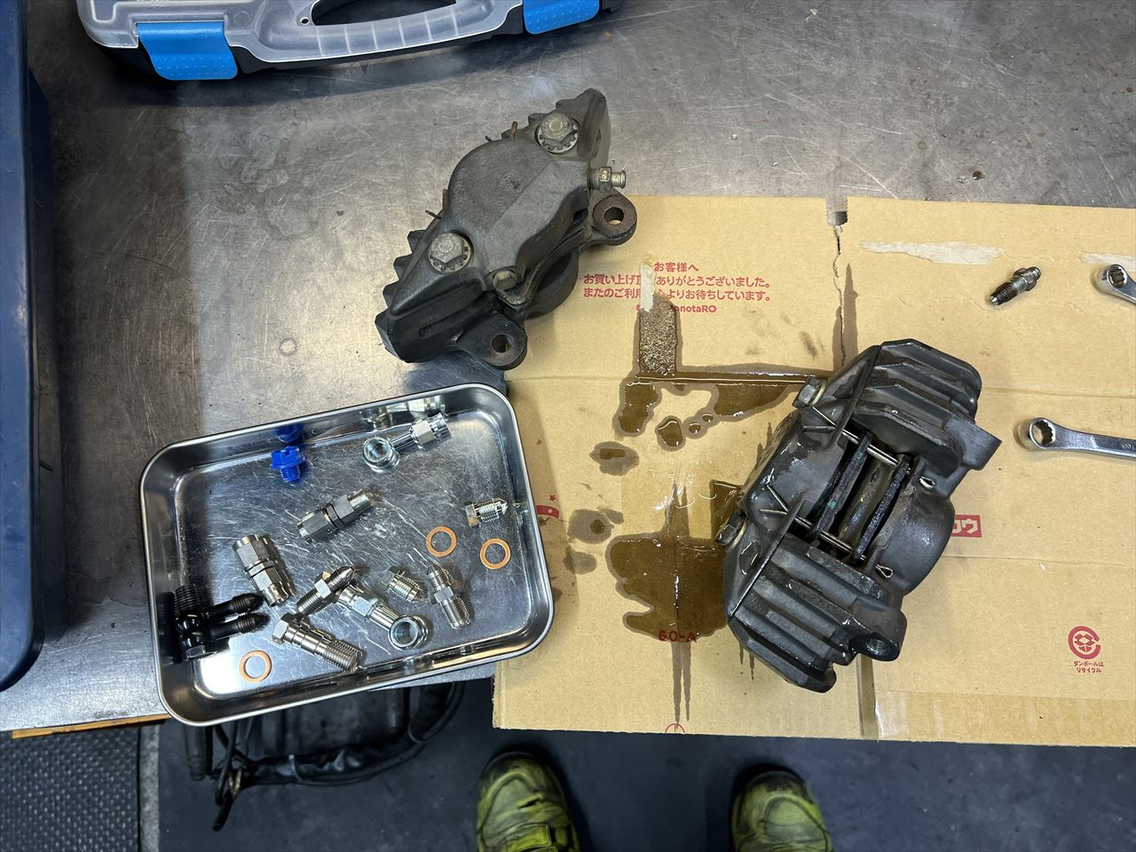 キャリパーはブリーザーやホースの接続箇所を変更します。