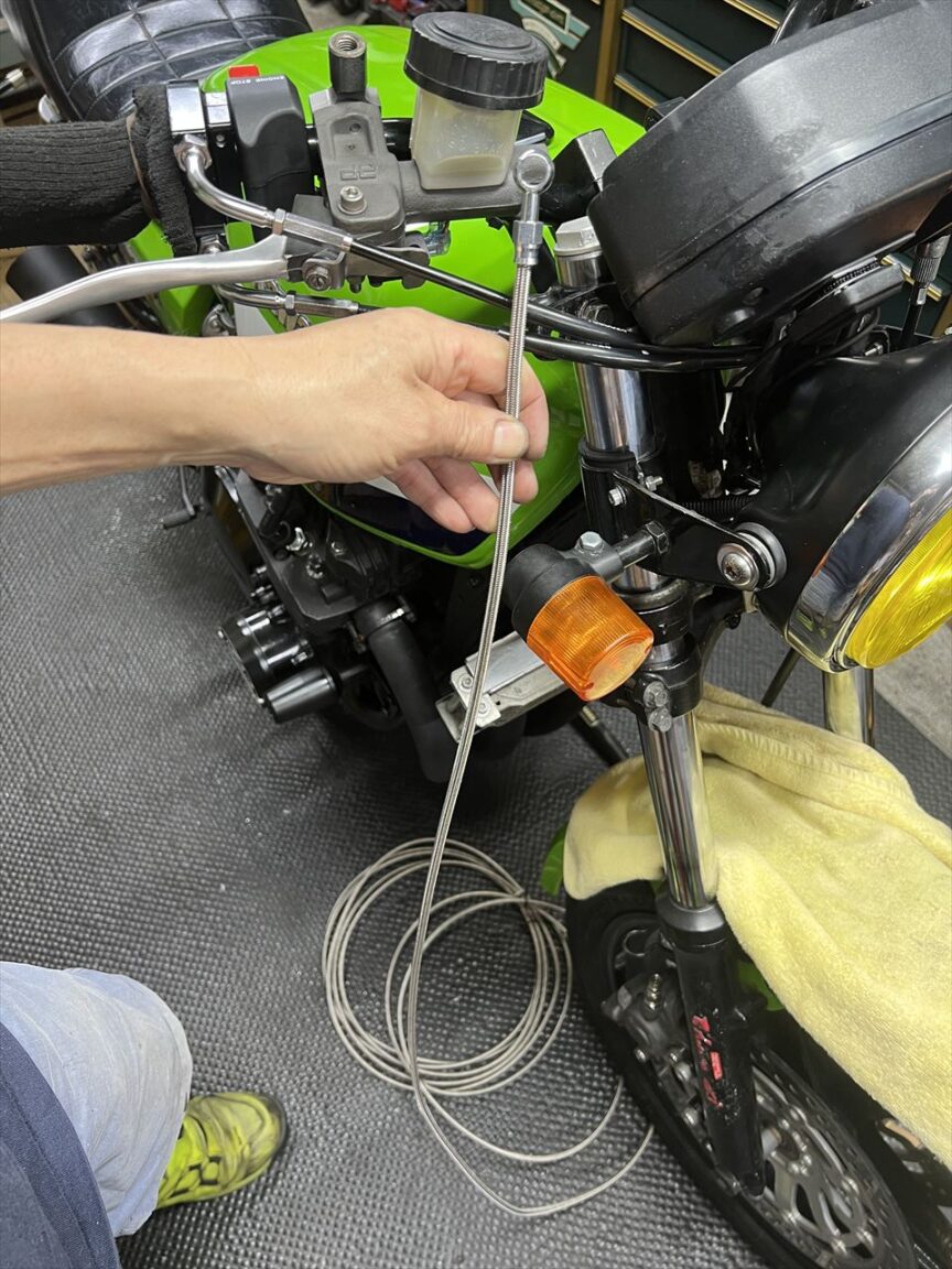 クラッチケーブルはハンドルを切ると上下に若干動きます。その動きを邪魔しないように、ケーブル中間はタイラップなどで固縛せず、ケーブルの上下動を阻害しない純正のクランプを使う方がいいでしょう。