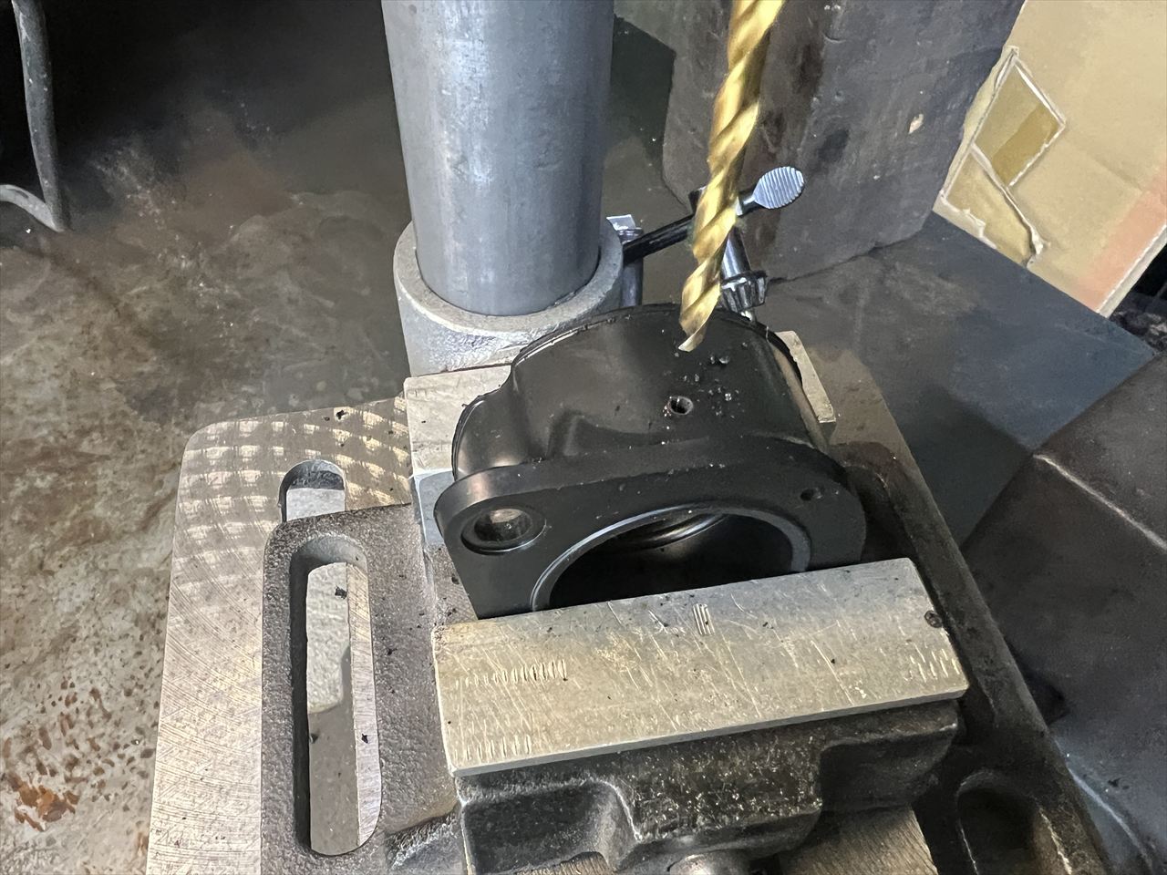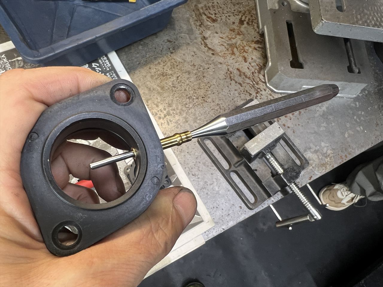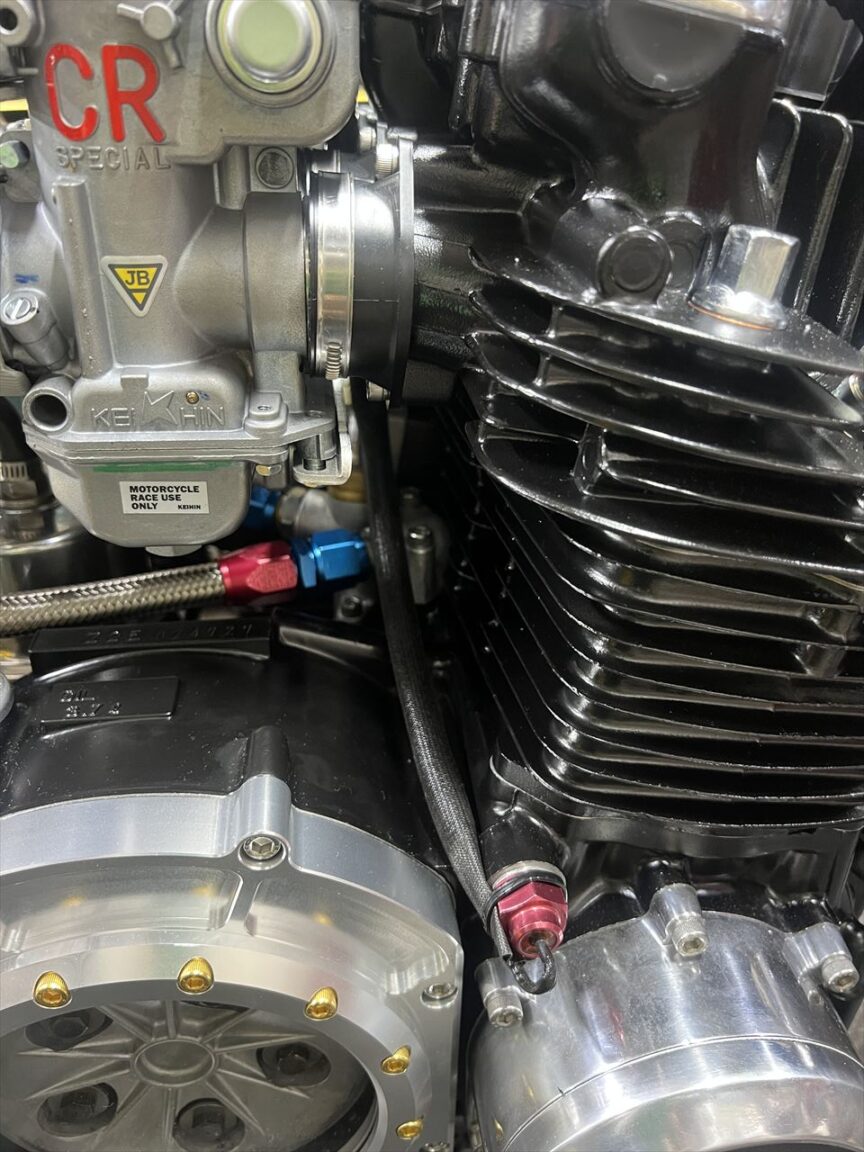 続いてキャブを取り付けます。キャブホルダーは口径の大きいJ系用を使います。負圧コック用のニップルを追加するので穴開けします。