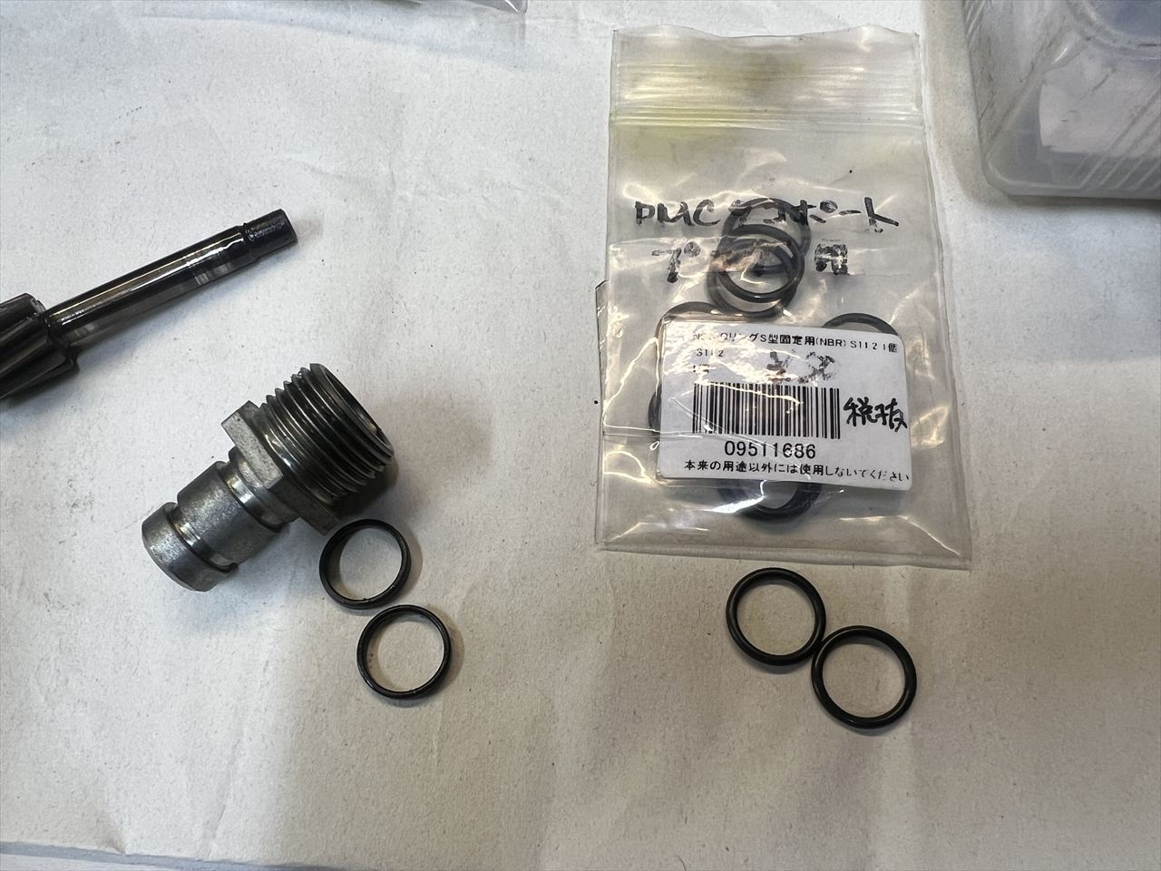 タコギヤハウジングは社外品の2本Oリング仕様です。潰れているOリングを交換しますが、純正Oリングは形状が適合しないので、近い形の汎用NBR製Oリングと交換しておきます。