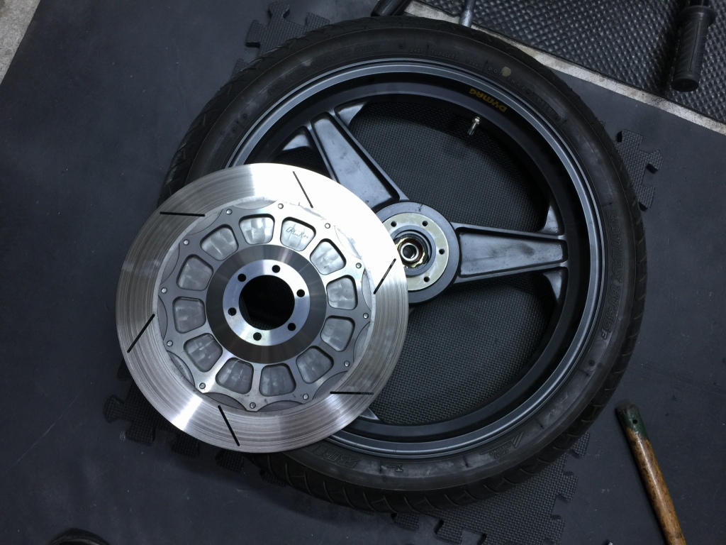 ストリート用マグホイールを使って、左右ともフラットで、特徴的なベアリングマウントも兼ねたS1ローターを再現しています。
