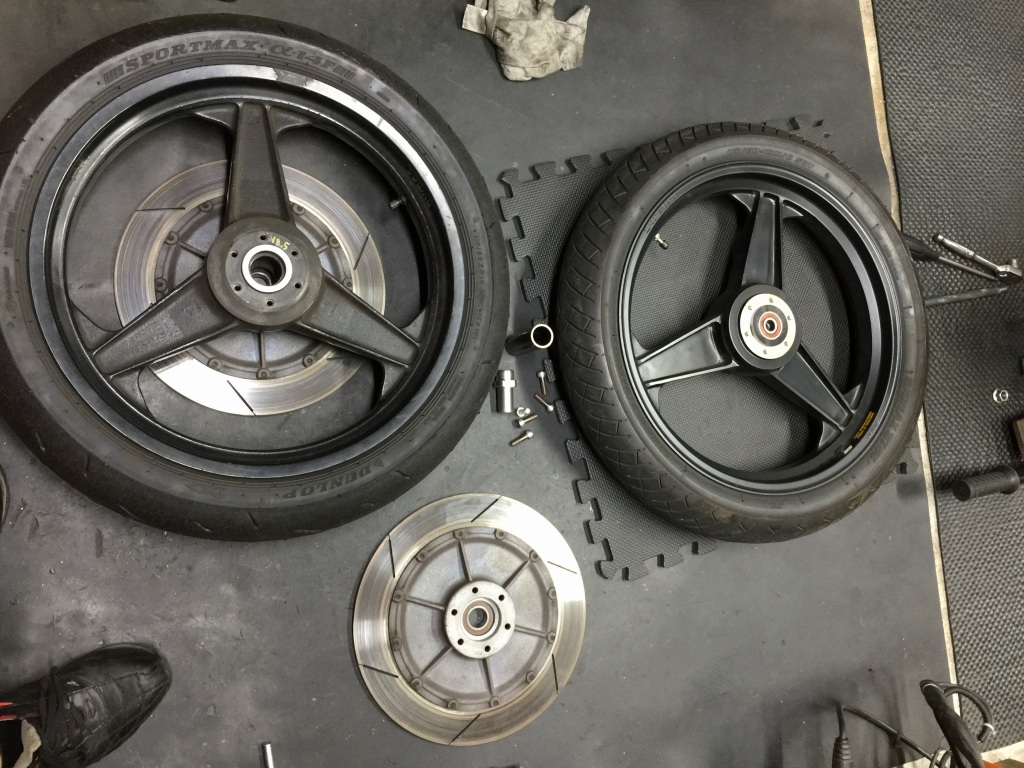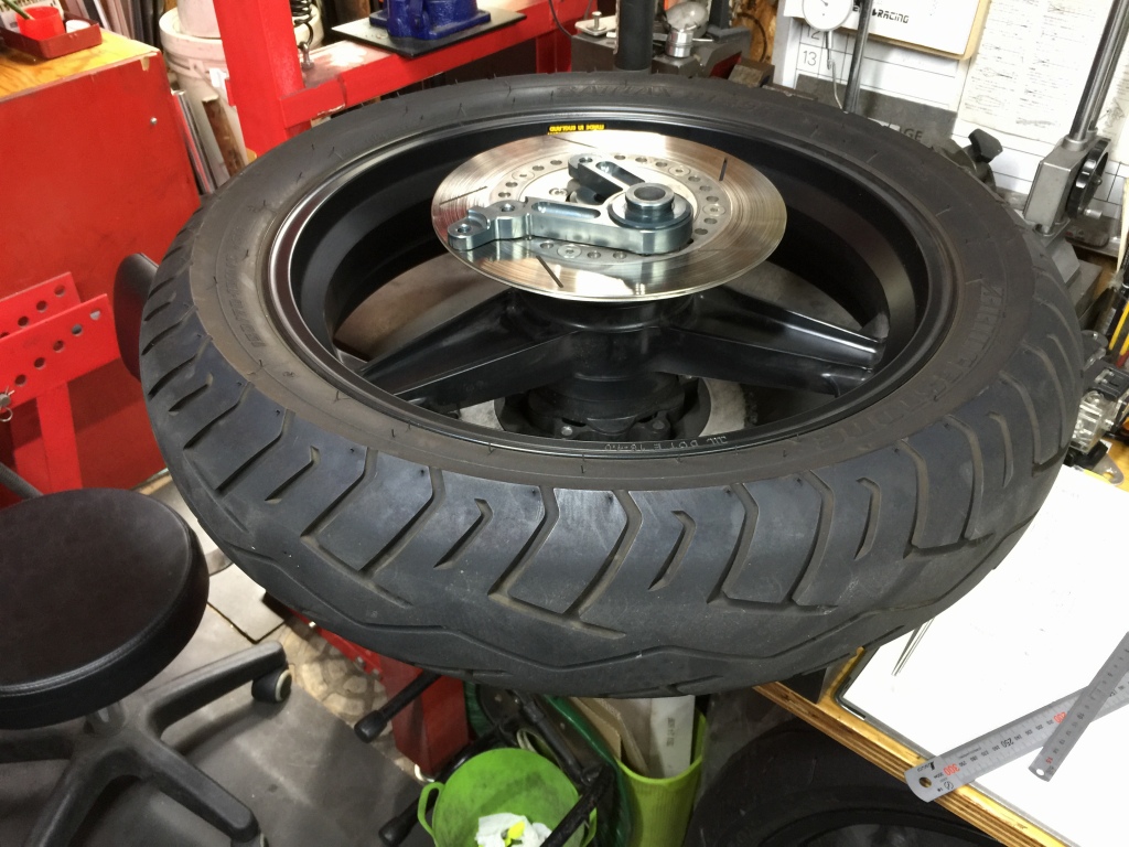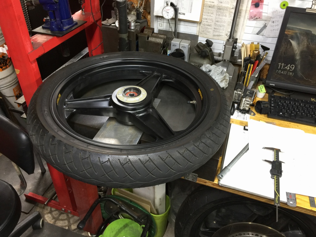 前後ローターを弊社のS1タイプに変更するので、ホイールを外して寸法計測します。