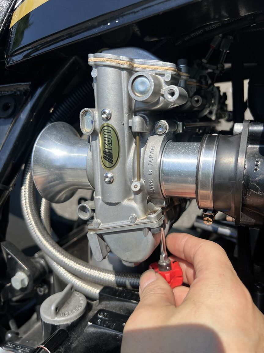 アイドリングと発進については、パイロットスクリューで調整します。今回は2回転戻しがベストでした。