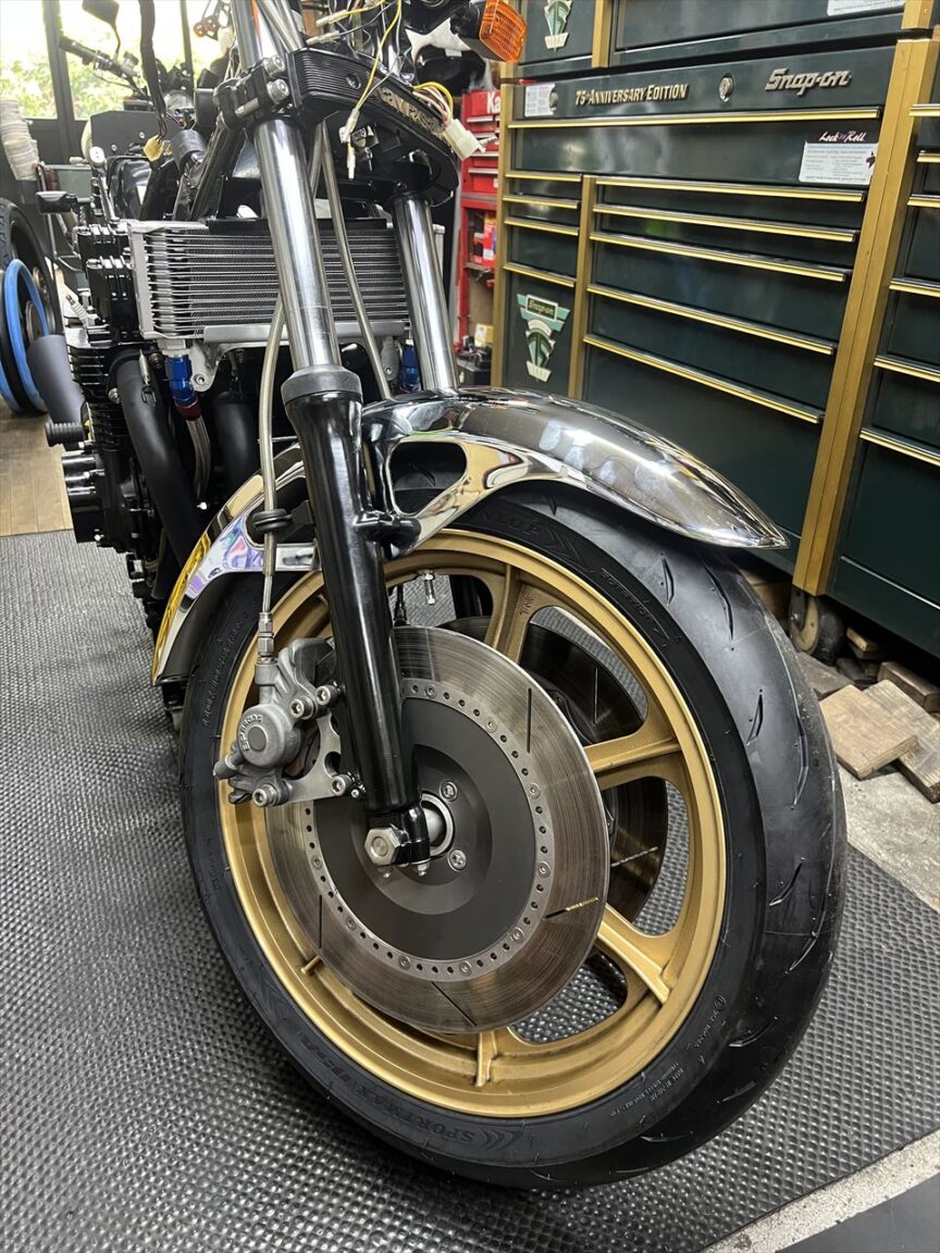ホイールを取り付ける際、タイヤのエッジはフェンダーボルトに少し干渉しますが、そのまま押し込めばハマります。