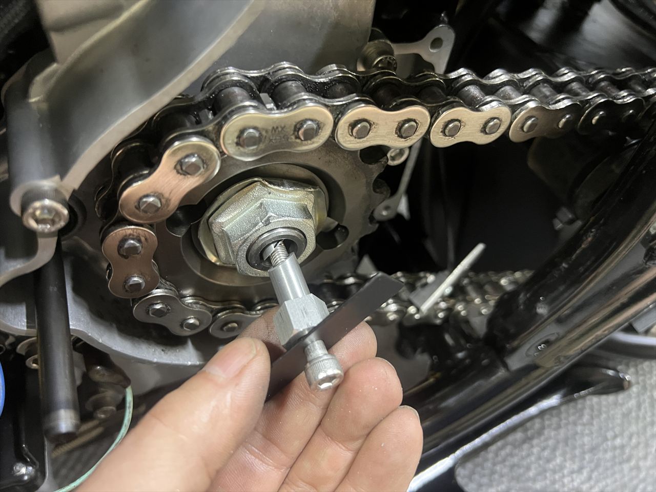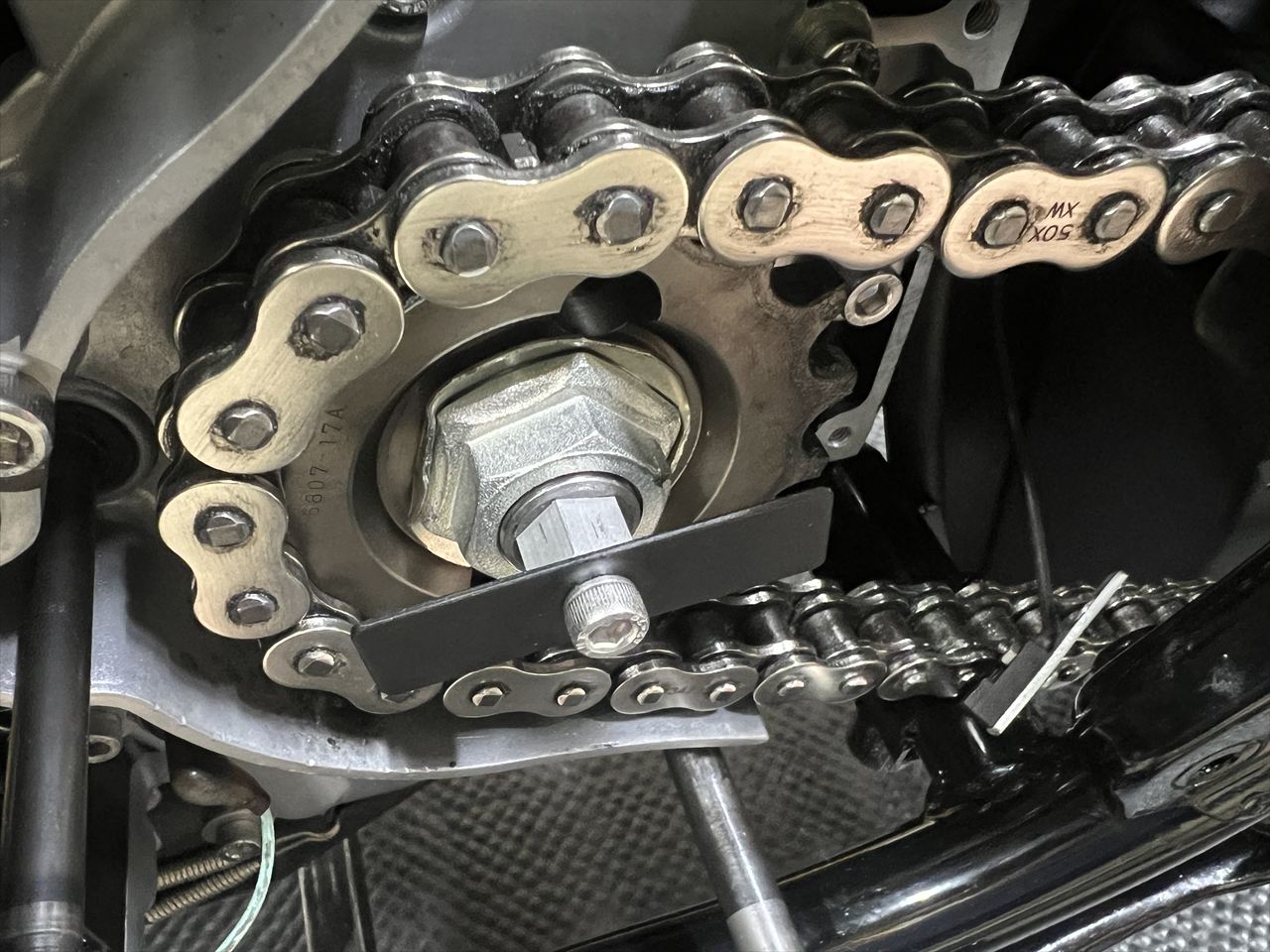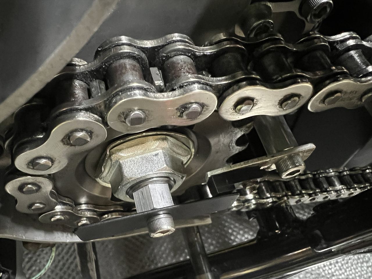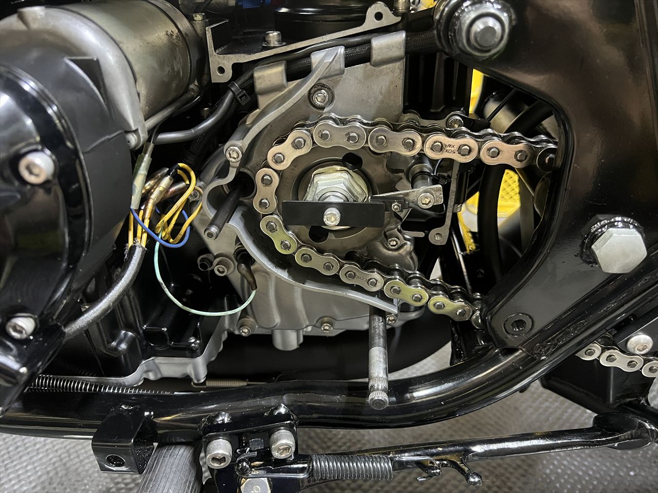センサーのハーネスは、チェーンやスプロケに接触しないよう固縛します。