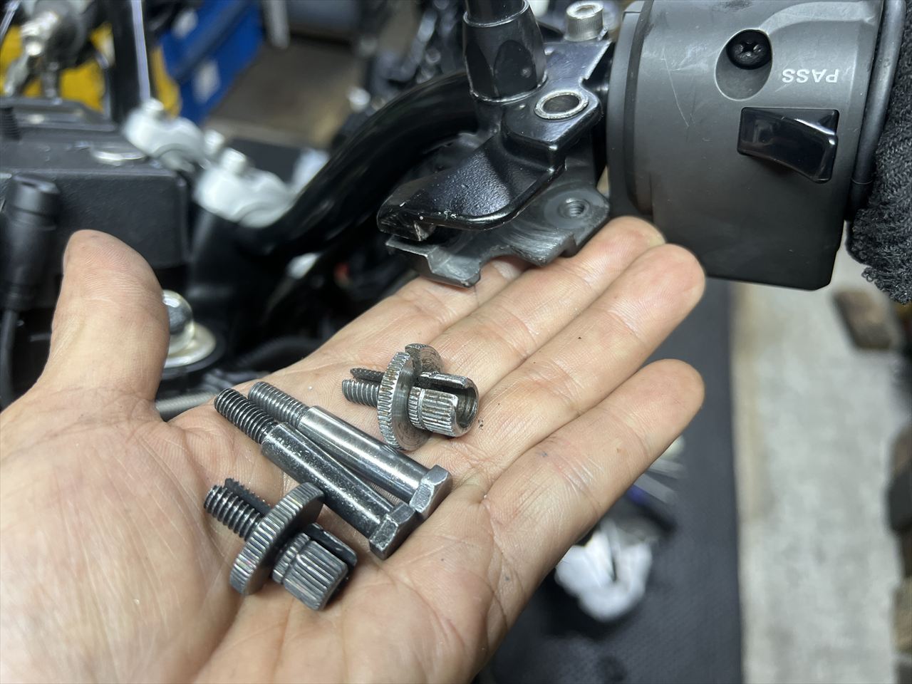 レバー部分のアジャスターは、サビていたので、1000R純正新品のブラックに交換します。