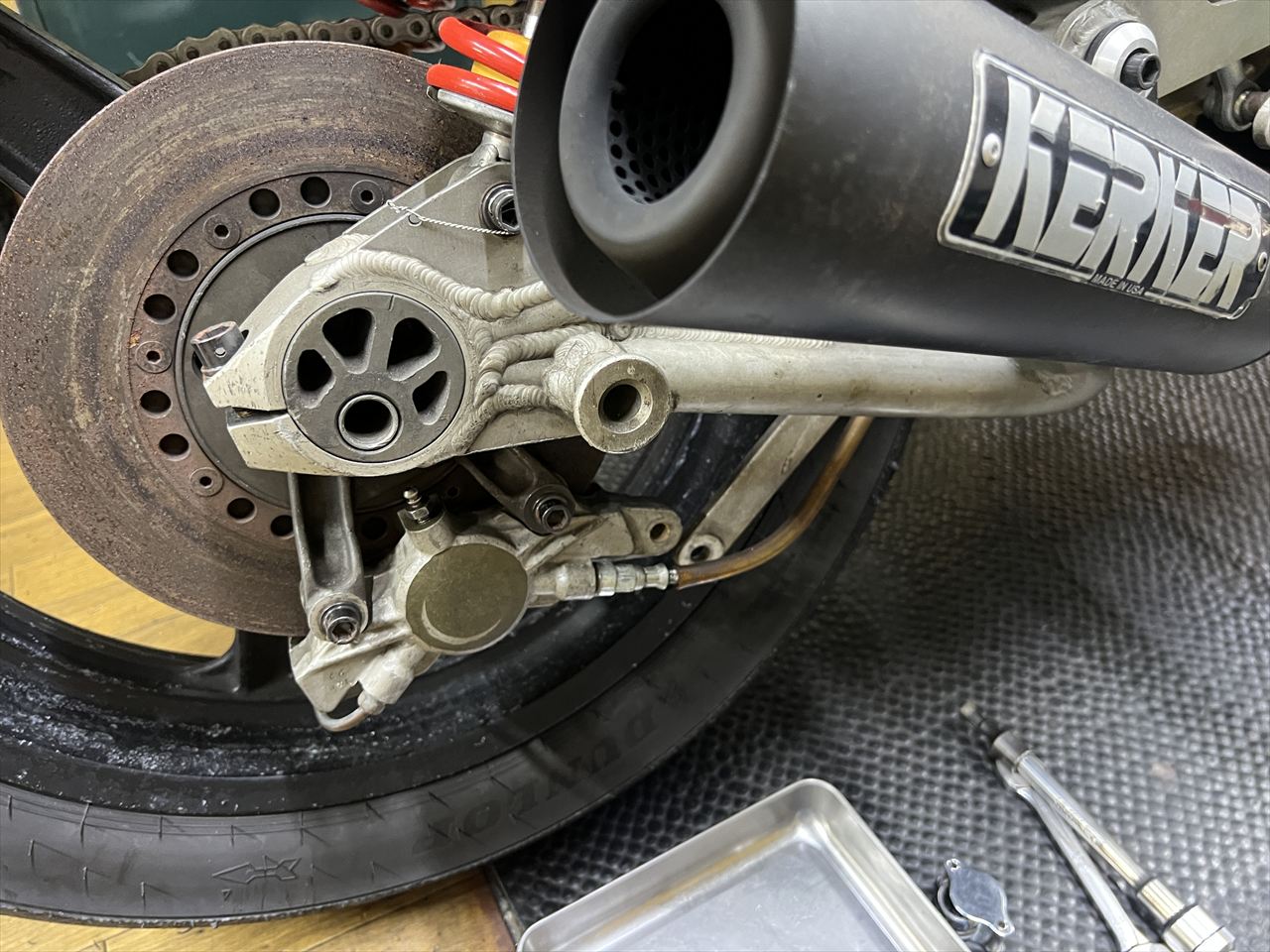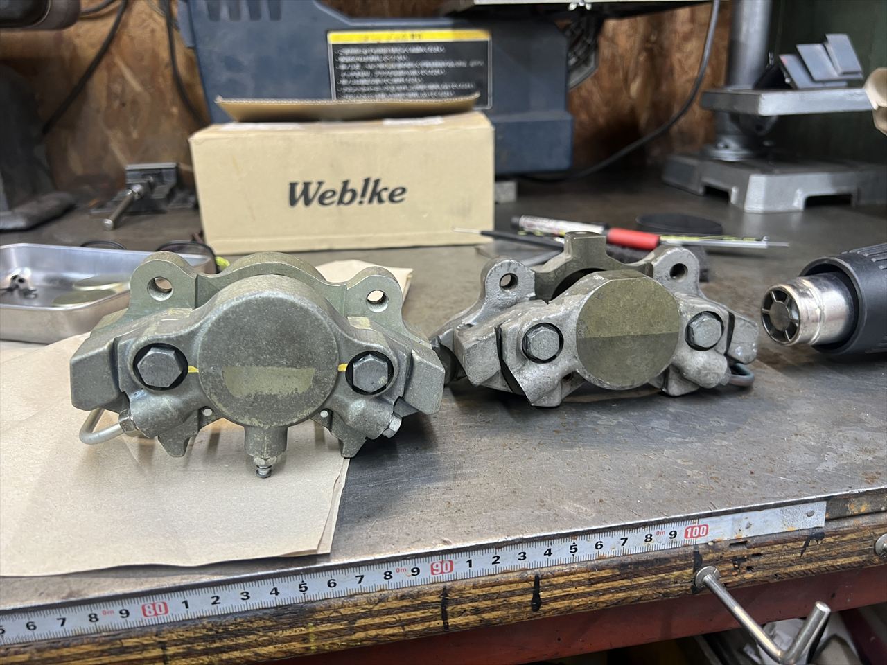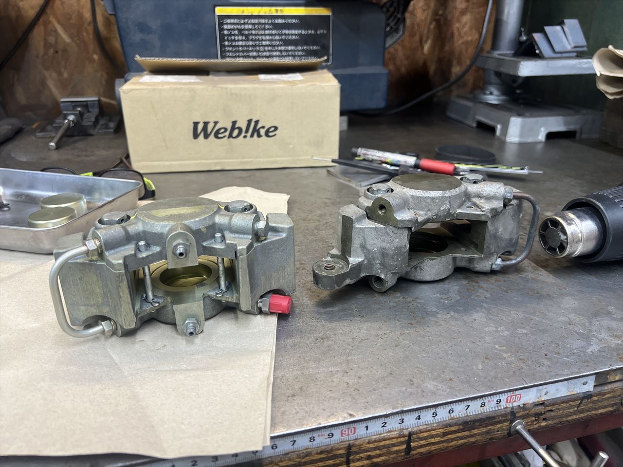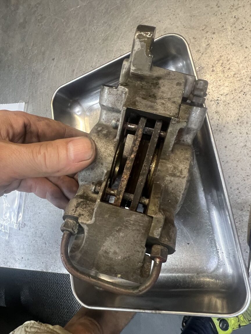 2年前にレストアして公道に戻ったこちらのS1、リヤキャリパーからフルードが漏れてきたとのことで修理します。