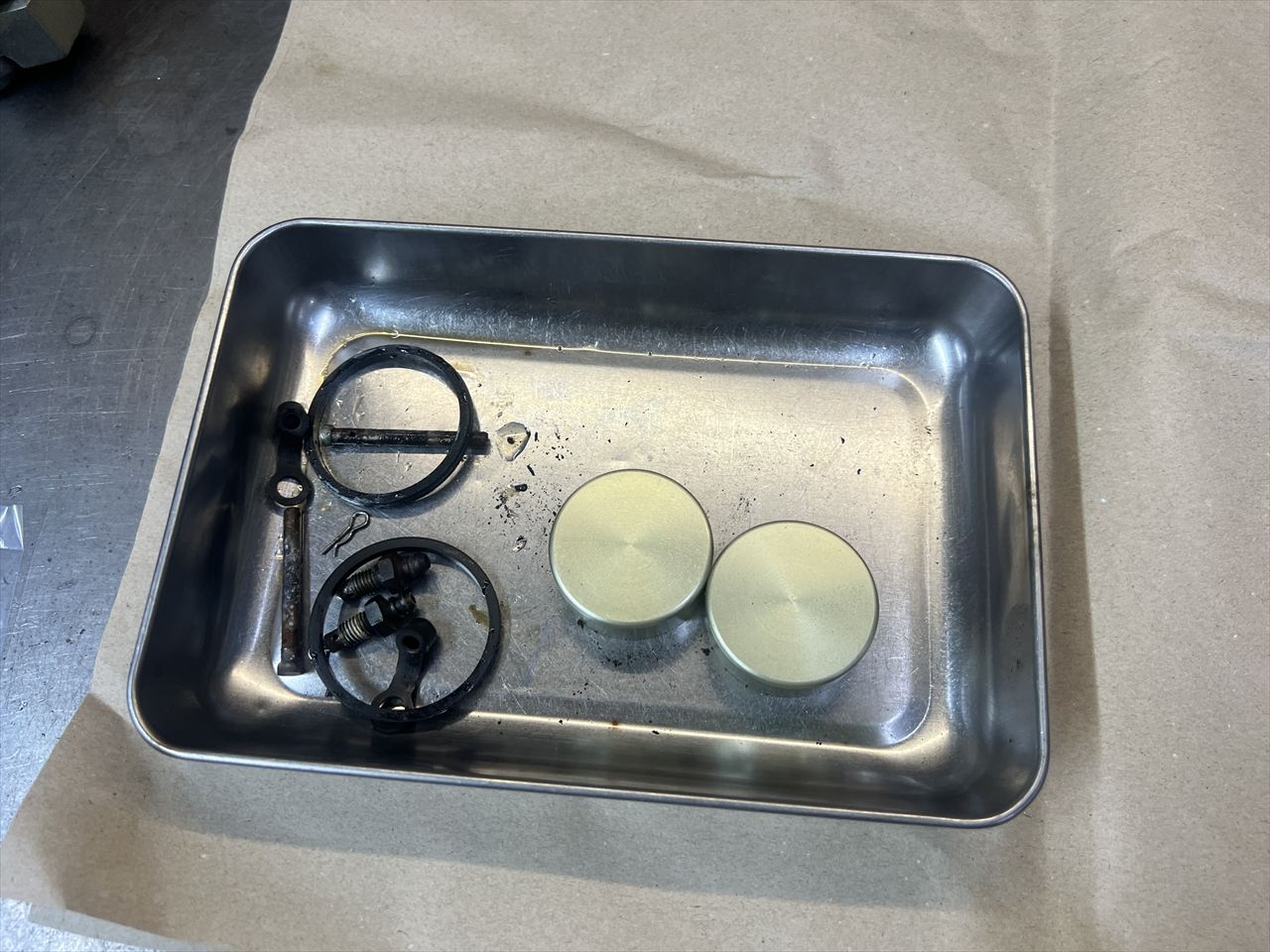 キャリパーを天日干ししている間に、小物を整えます。ピストンは汚れを取るときれいなままだったので継続使用できます。