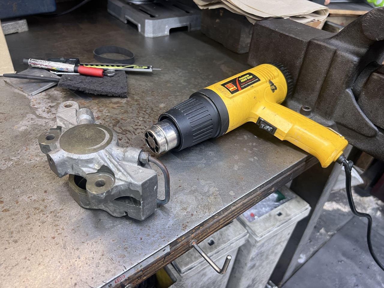キャリパーは工業用ドライヤーでも熱し、内部に残っているかもしれない水気を飛ばします。