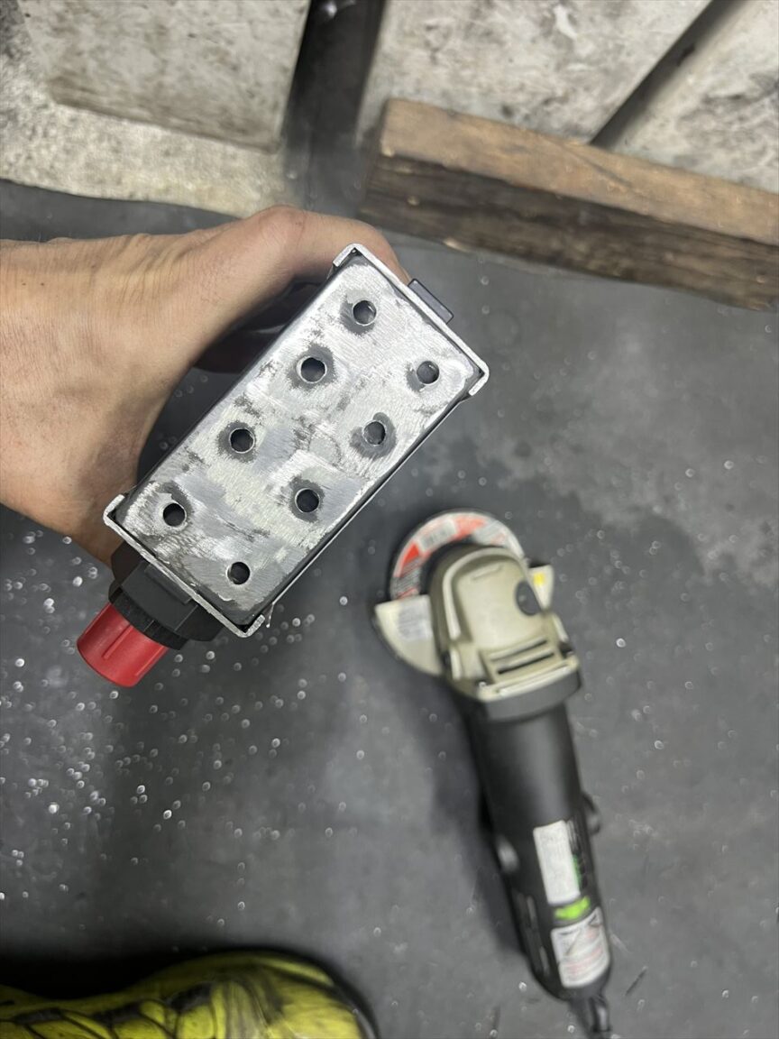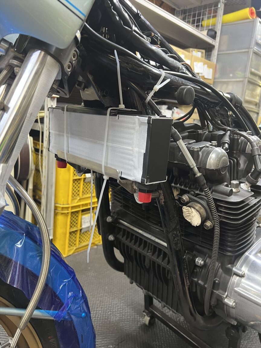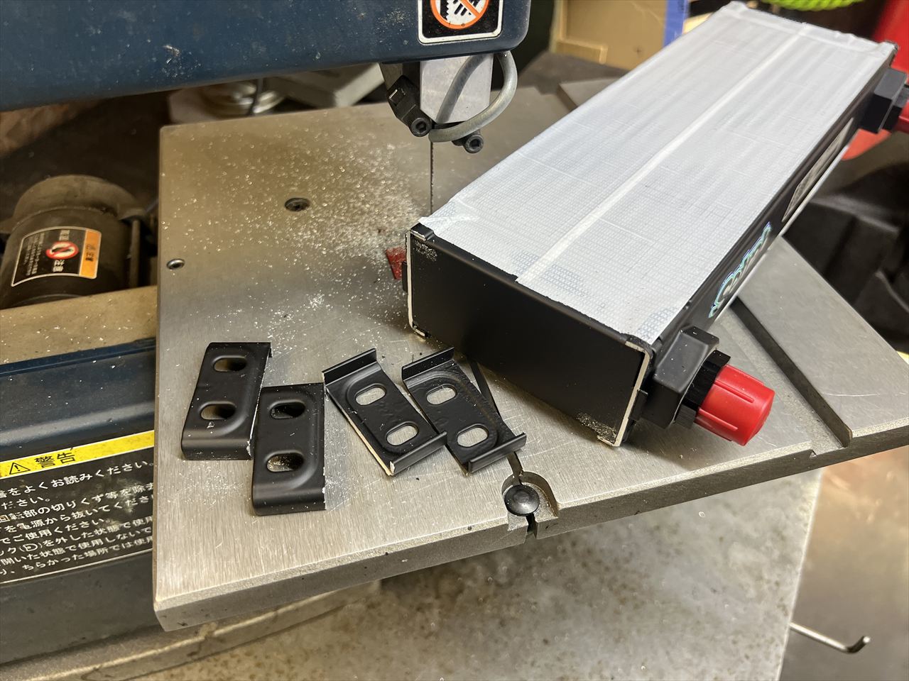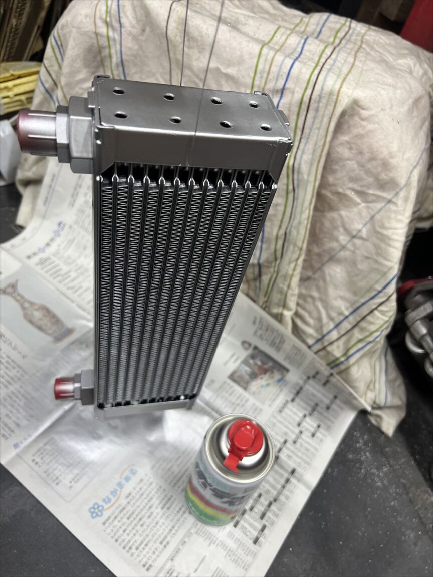ワークスオイルクーラー取り付けの続きです。ロアーブラケットをアルミ板溶接で作ります。これはワークスS1仕様と共通です。