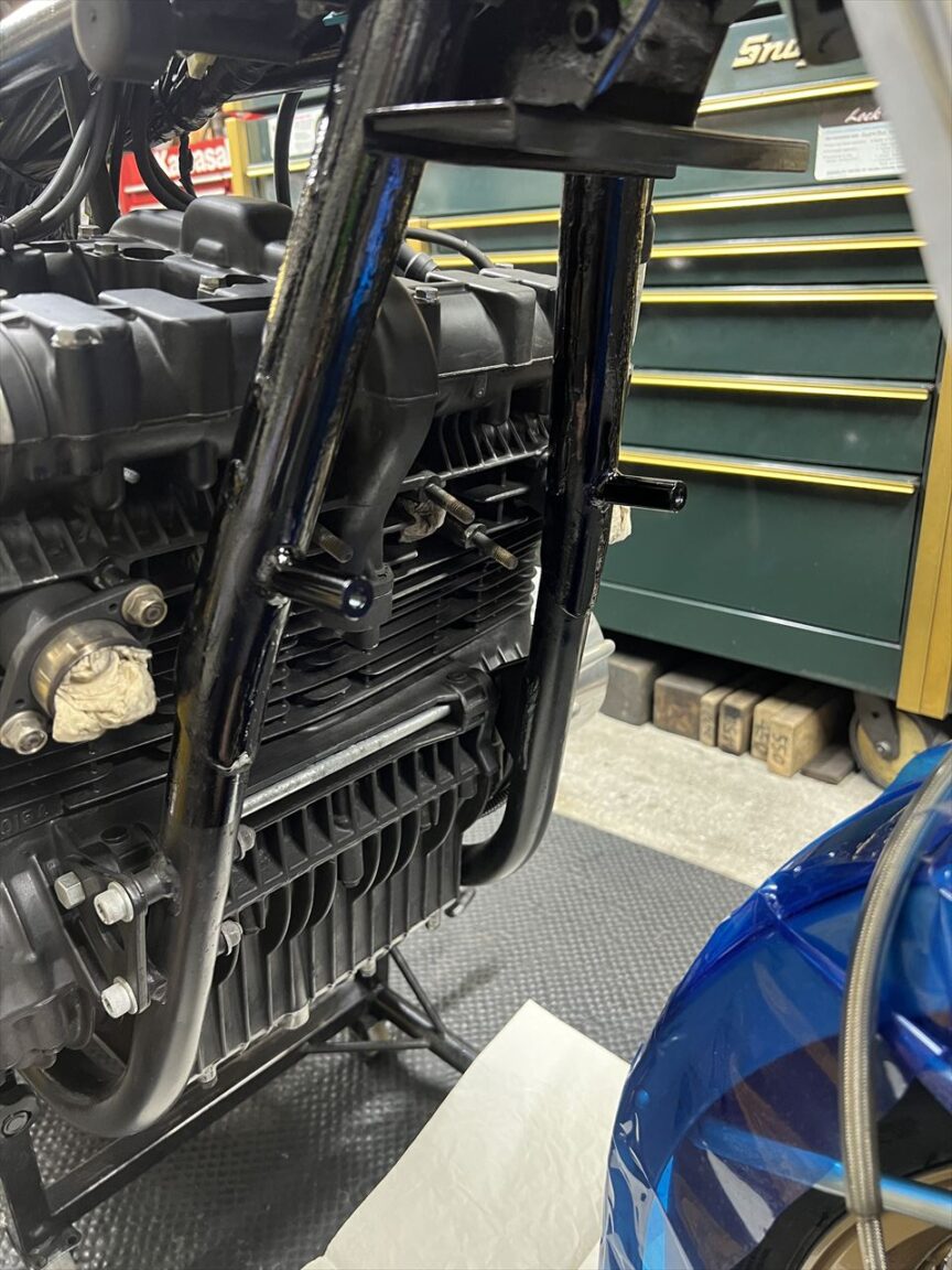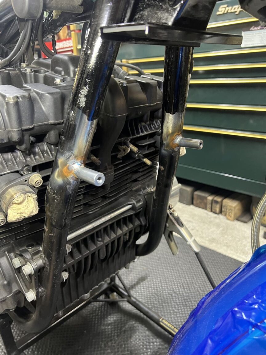 ロアーステーを溶接するとこんな感じ。この辺りも1000R系のワークス仕様と同じ手法です。