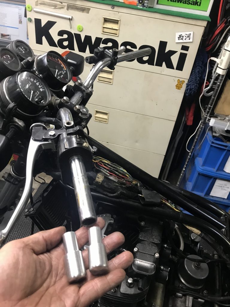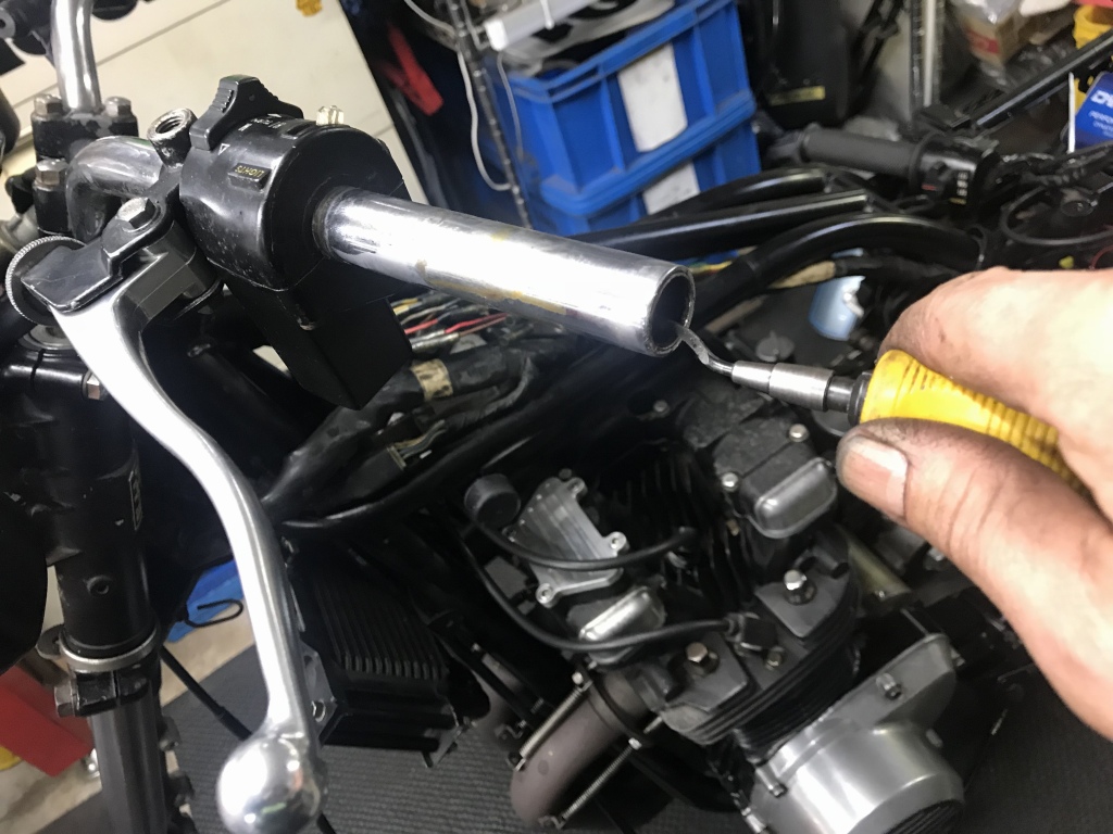 バーエンドを圧入し、ハンドル幅が広くなりました。