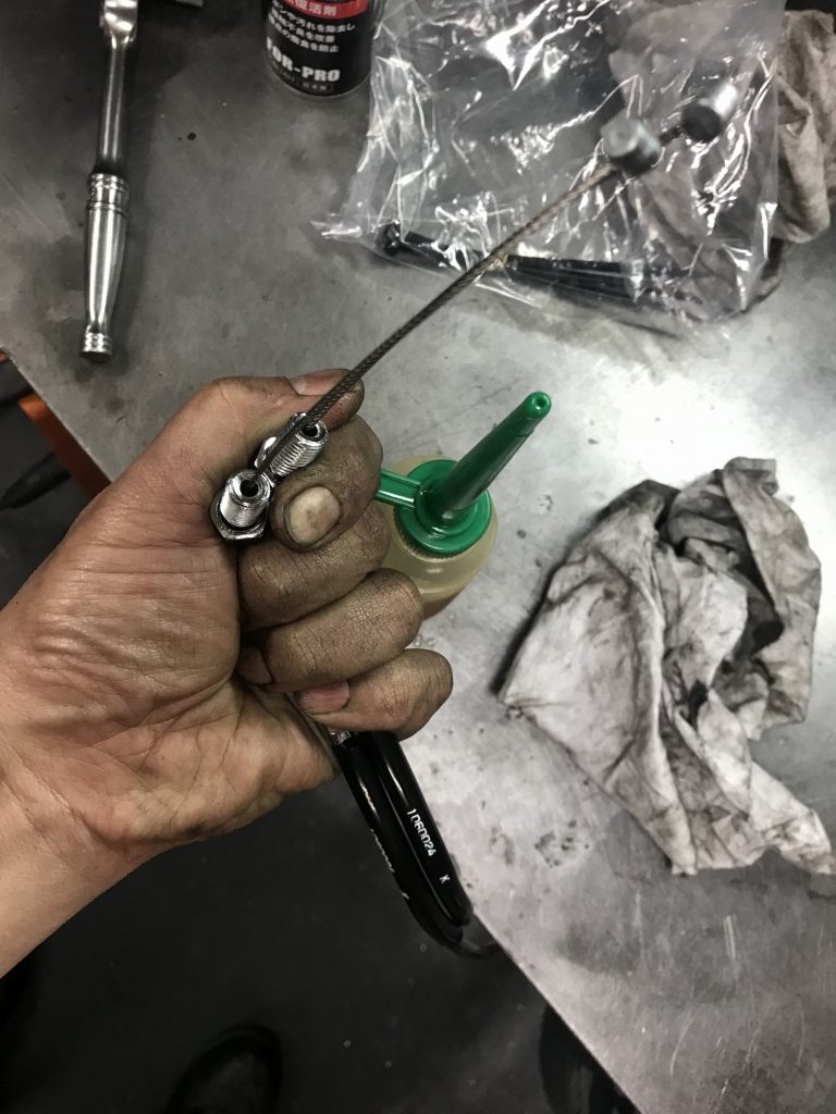 新品ケーブルには潤滑のためエンジンオイルを注します。