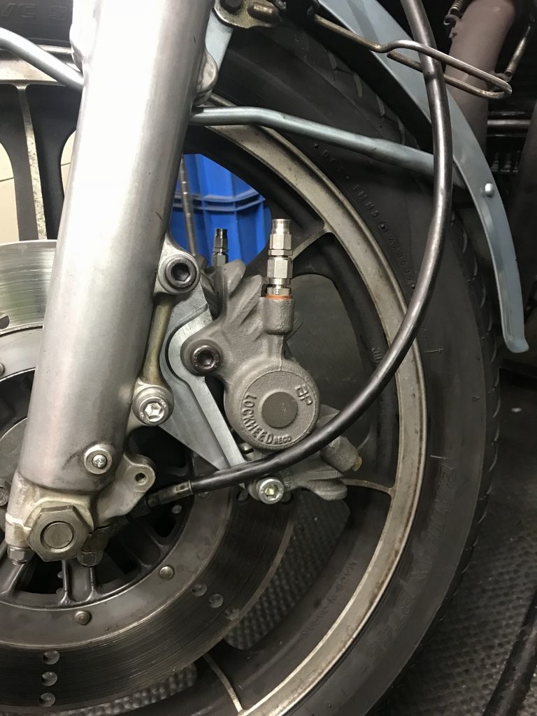 続いて、お持ち込みのロッキードキャリパーを取り付け確認します。