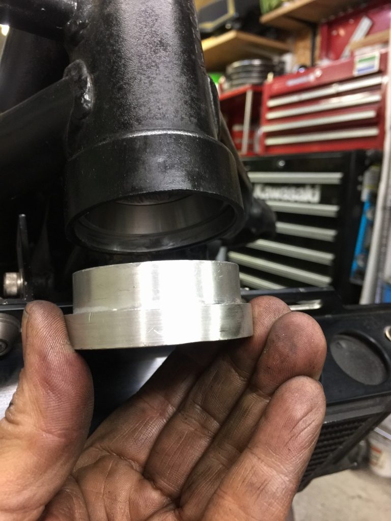 凸部を修正後、新しいアウターレースをフレームに圧入します。