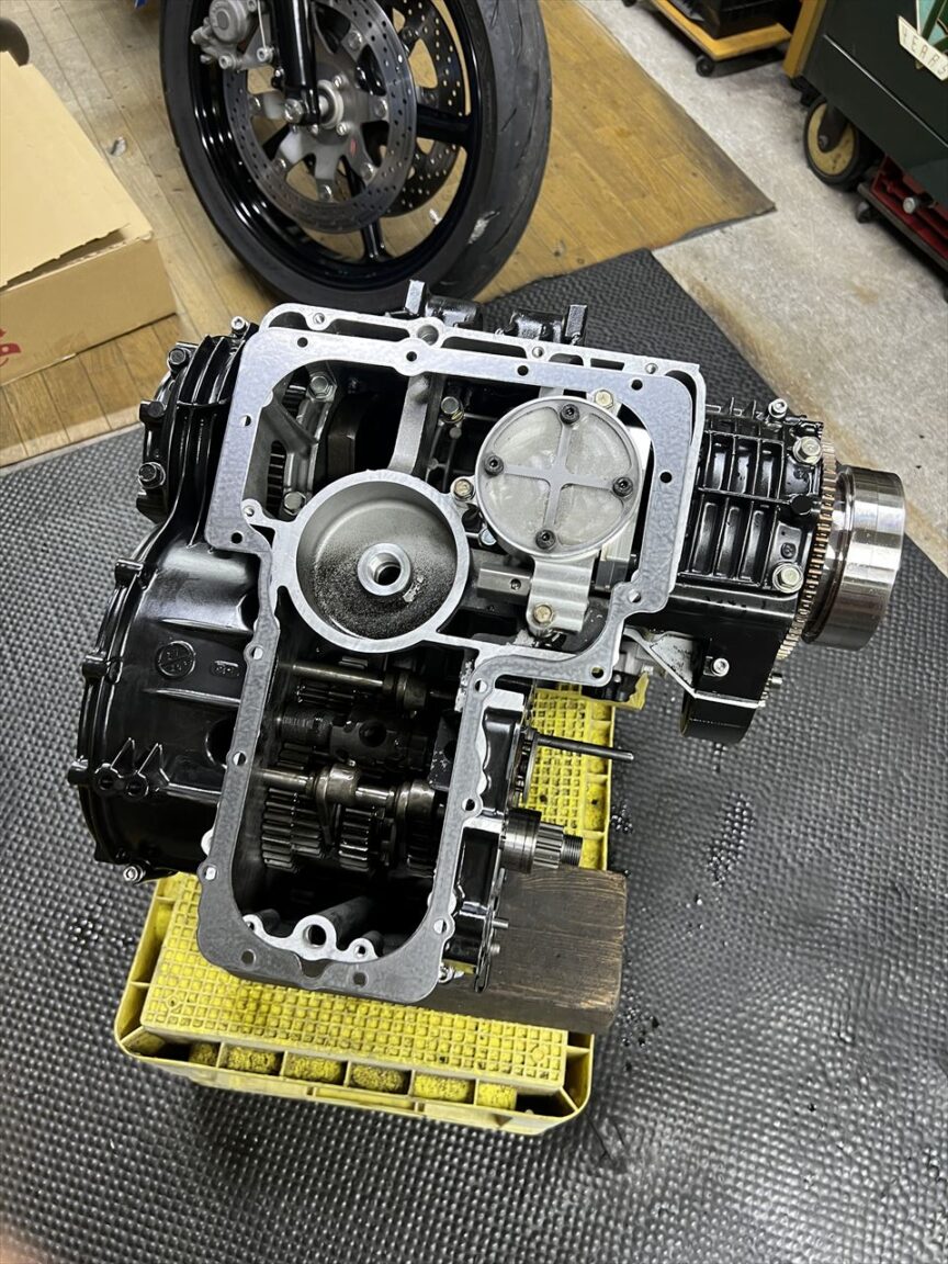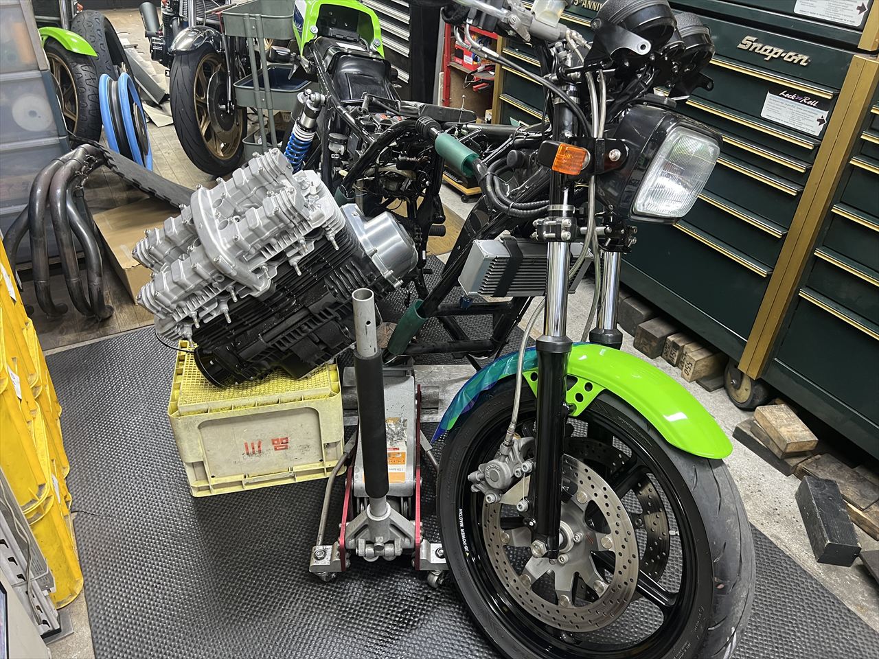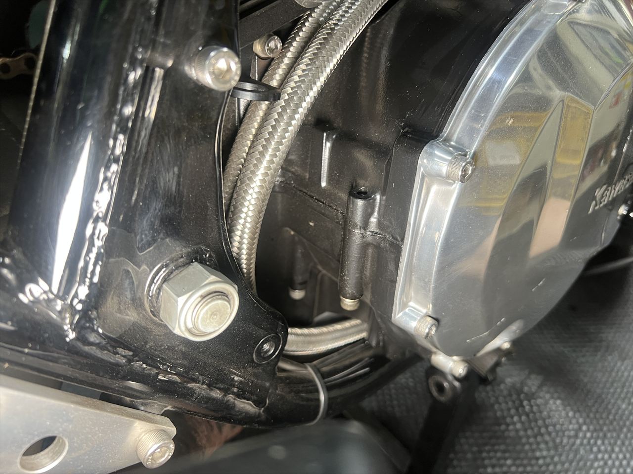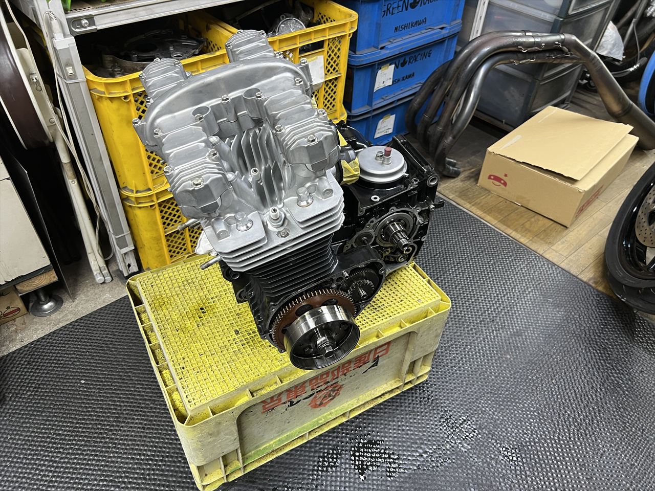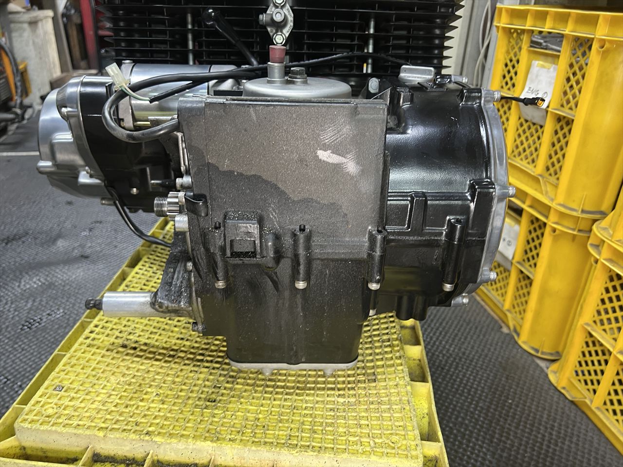昨年フルカスタムして7月に納車したこちらの車両、1年弱でエンジンからのオイル漏れがあるとのことで修理します。
