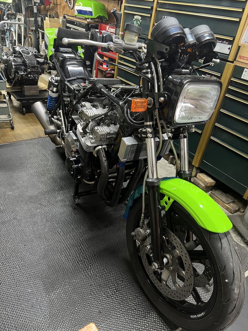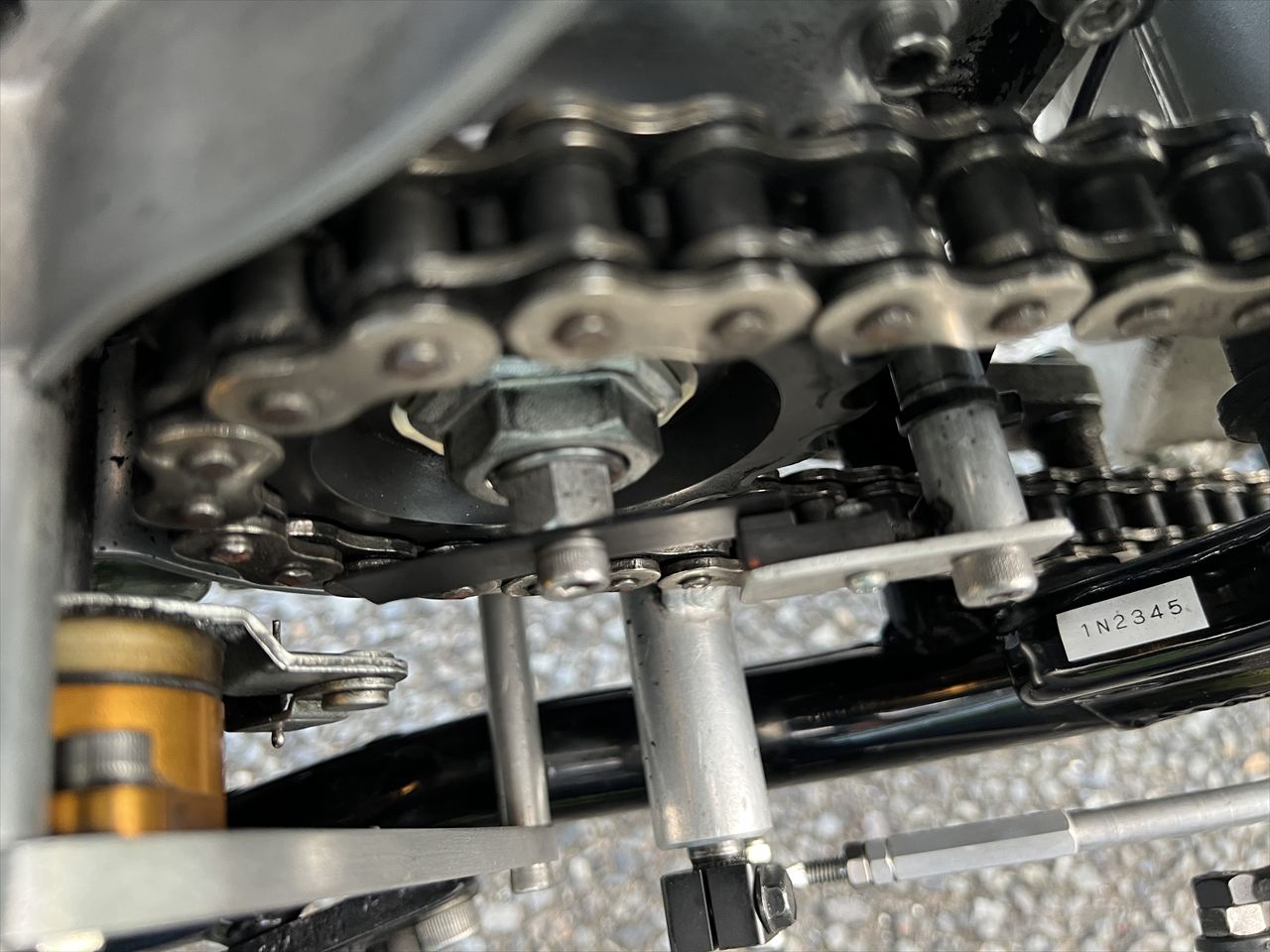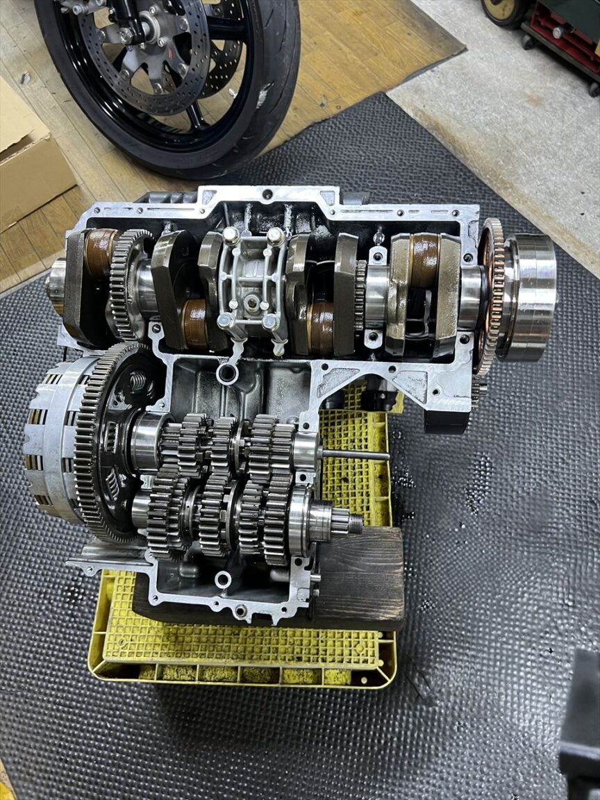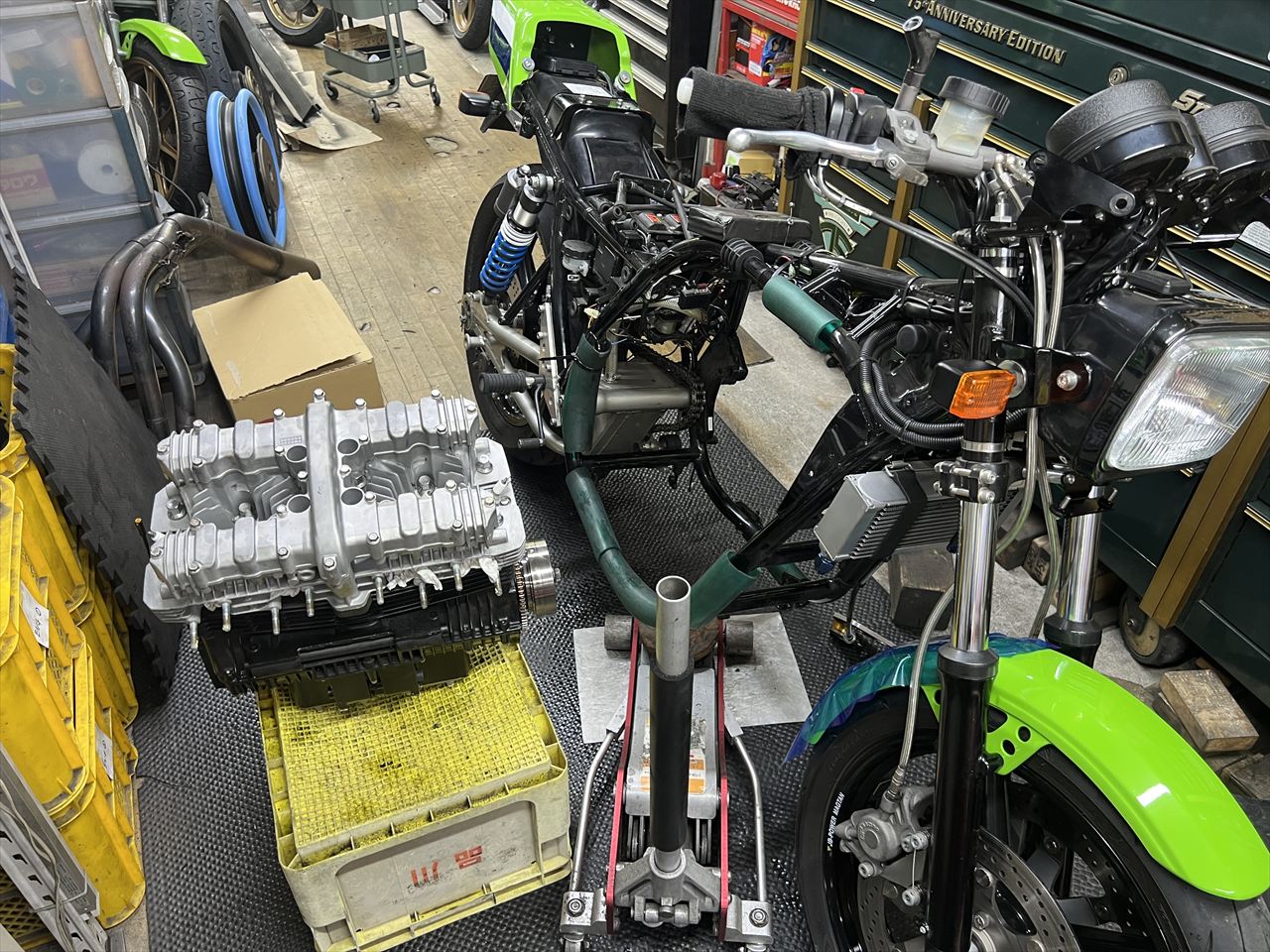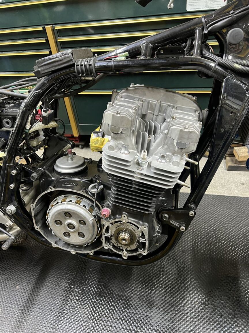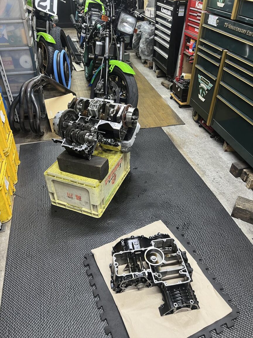 昨年フルカスタムして7月に納車したこちらの車両、1年弱でエンジンからのオイル漏れがあるとのことで修理します。