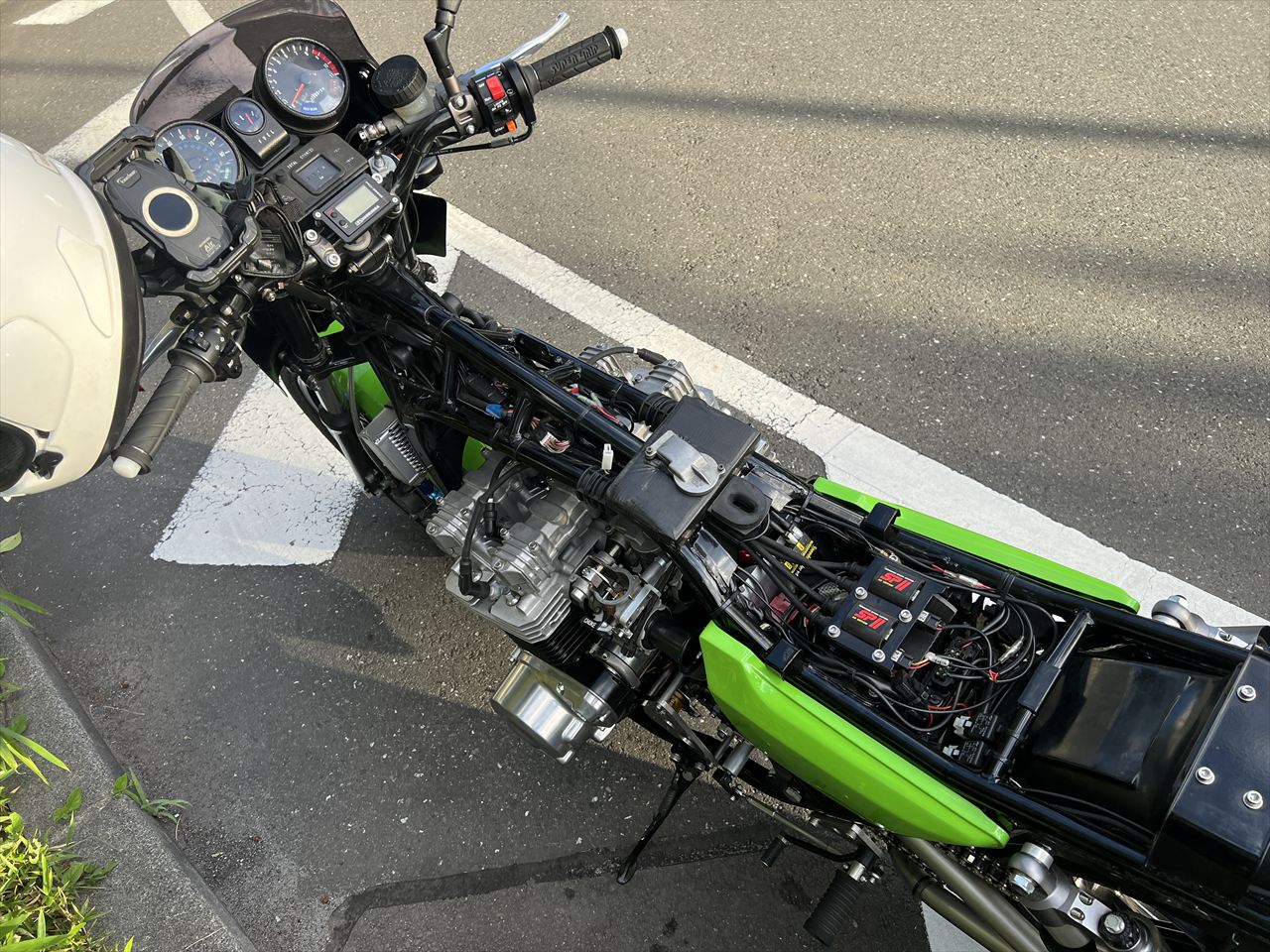 その他、6000rpm付近のスロットル急全開でややノッキングが発生することを確認、点火時期を再調整します。