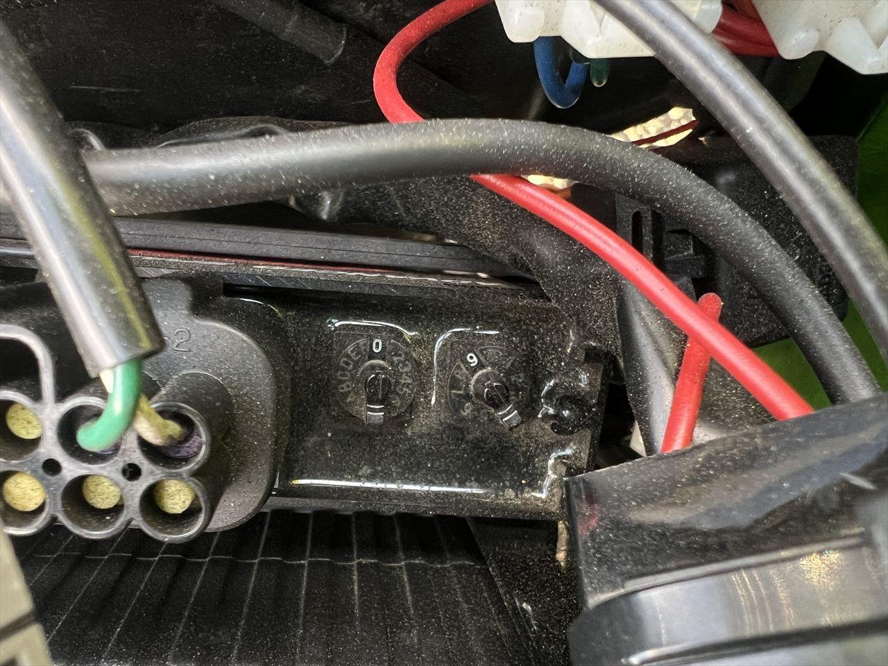 アウトプットシャフト側にあるスピードセンサーを確認すると、トリガーを検知した際にインジケーターランプは点灯します。センサーは大丈夫のようです。最高速度呼び出しボタンを押すとトリップとオドメーターは動きます。メーター本体が故障したのかもしれません。