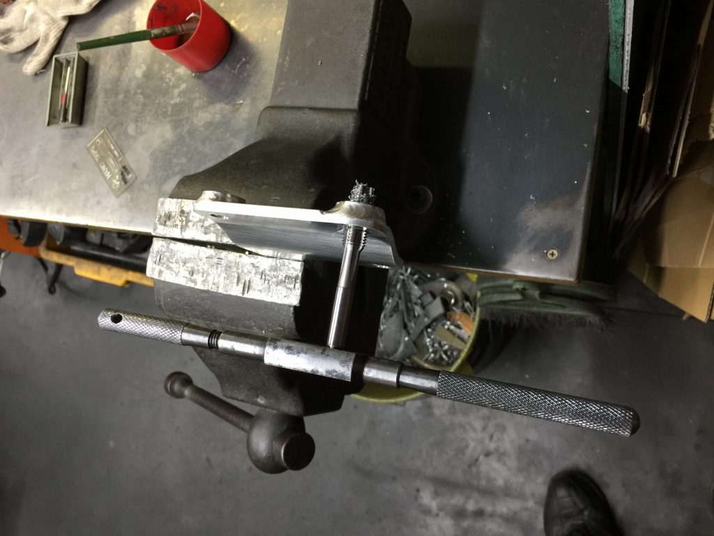 メインのプレートとカラーを連続してネジ切りします。