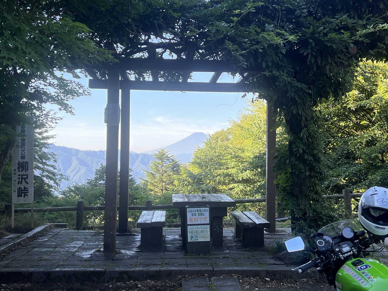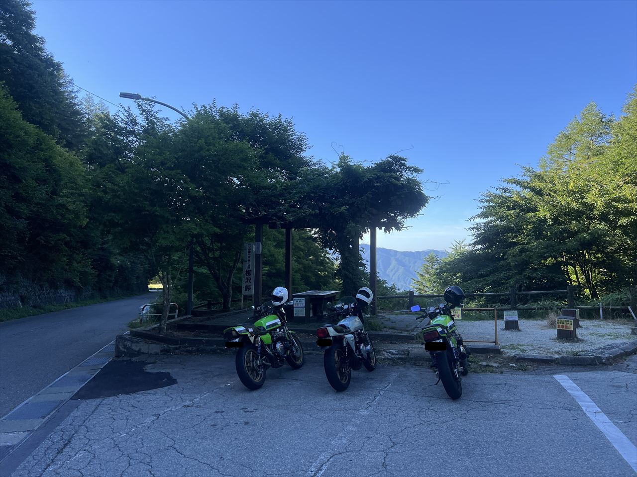 8時前にはピークの柳沢峠に到着。青梅のコンビニから約50kmの道のり、ほとんど信号も無いほぼ一本道のワインディングです。
