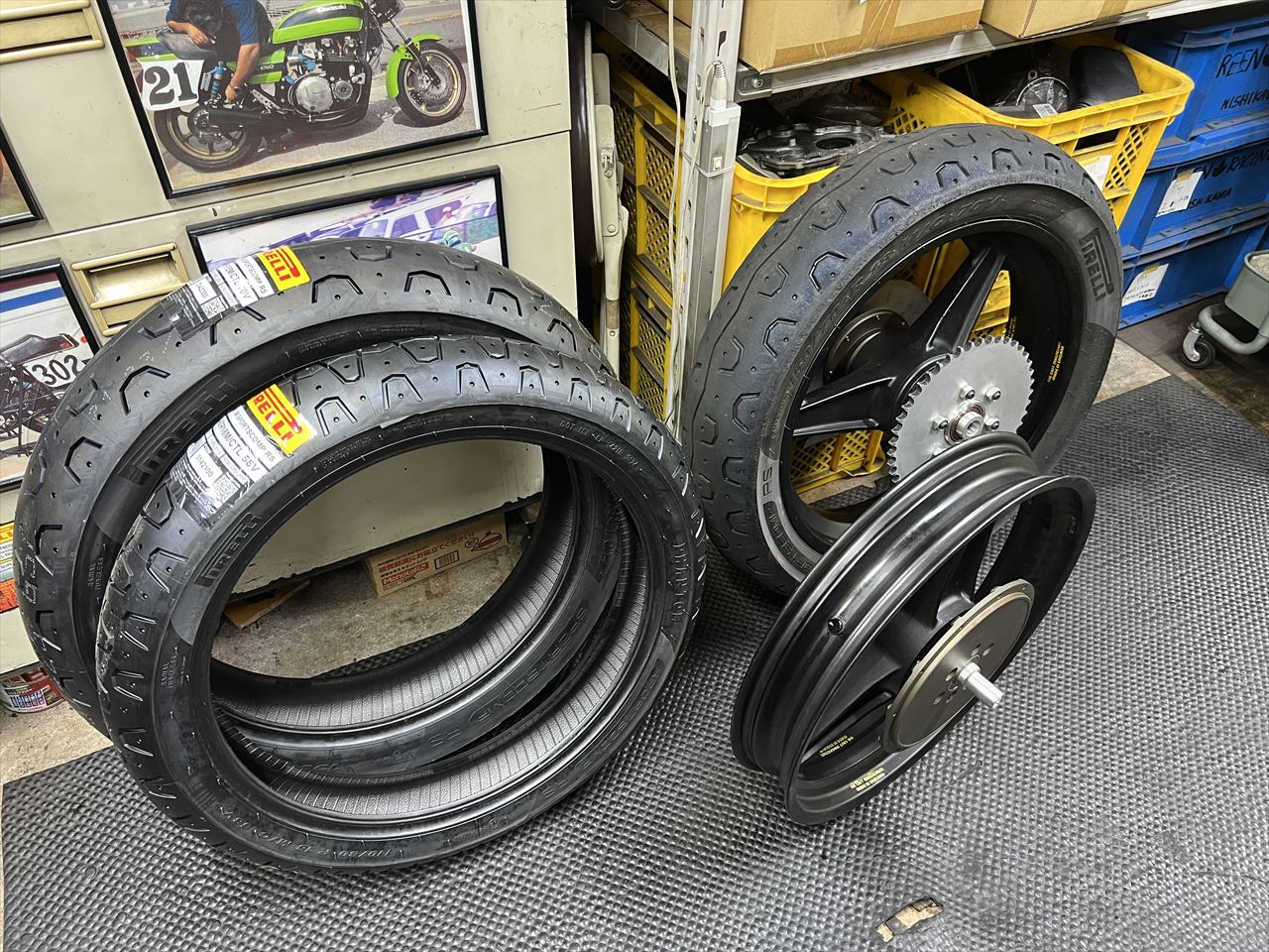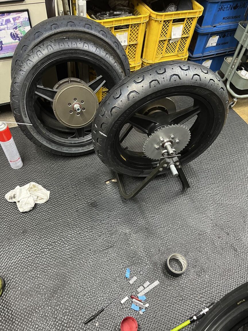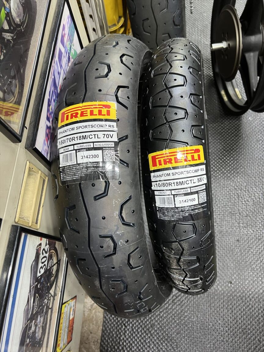 レースにも使うので、タイヤはピレリファントムの新品に交換します。