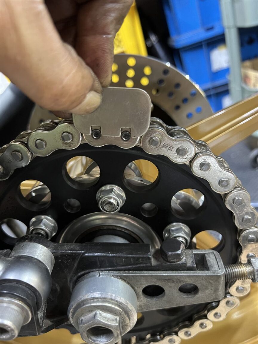 リヤスプロケとチェーンを取り付けます。