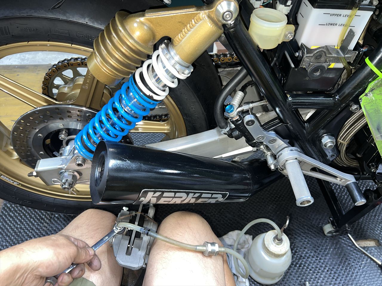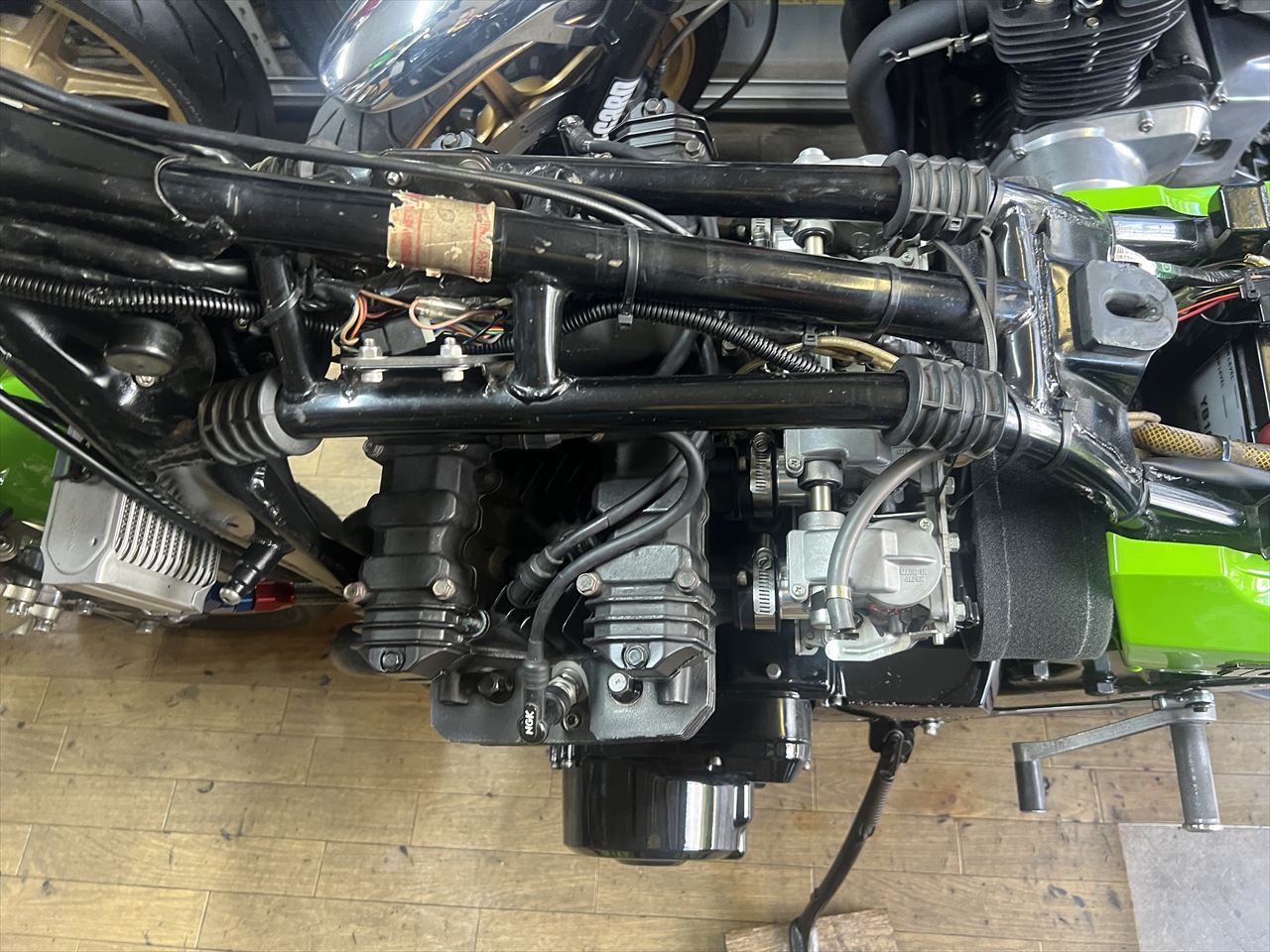 往復の工程でエンジンのノッキングを確認。3000rpm位でスロットル3/4開度以上に開けると発生します。結構ヘビーノックなので対策が必要です。数年前にCRキャブのセッティングをしたときにノッキングは特にありませんでしたが、今になって出るようになりました。点火系はノーマルなので、この機会にウオタニSP2にして調整し易くするのをお勧めします。ちなみにオーナーさんは全く気付かなかったとのことでした。最近、ノッキングが出る個体が多い気がします。