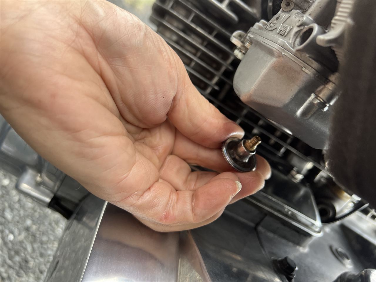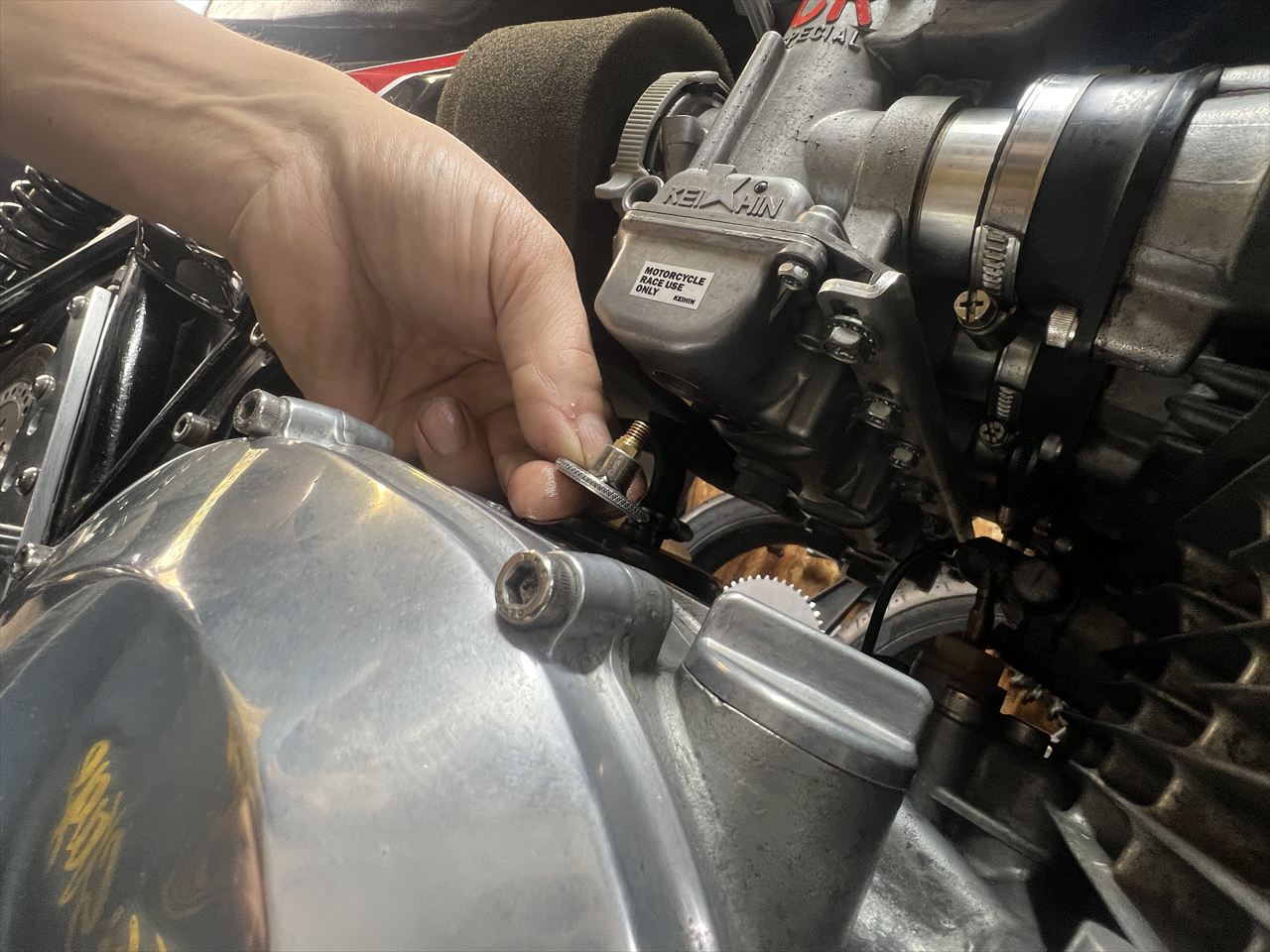 車載でのメインジェット交換には、背の低い自作の専用ドライバーを使います。