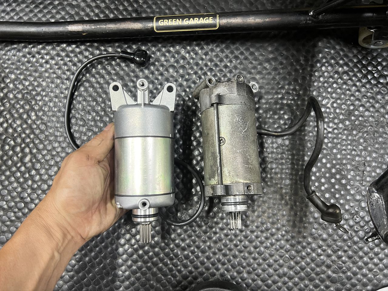 既存のモーターと比較します。現行品はGPZ1100時代と同じZ系最大トルクの物。形の違いで直ぐに識別できます。