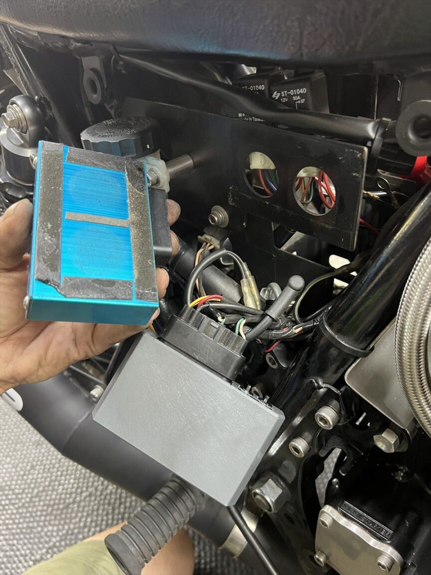 エンジンは極低速でバラついていたので、点火系のウオタニユニットも新品交換します。現行品はグレーの樹脂ケースとなっているので、直ぐに見分けが付くでしょう。