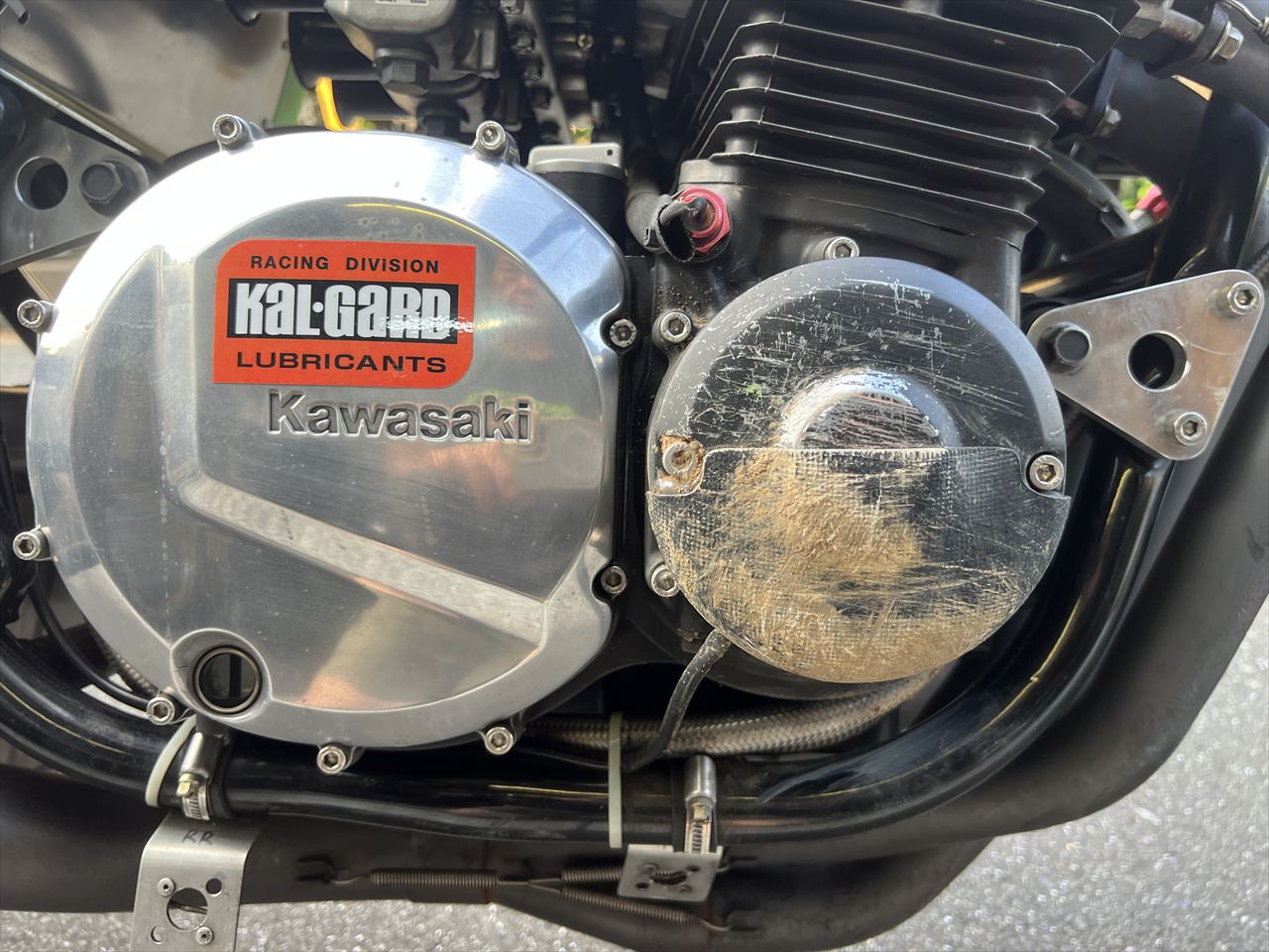 エンジン右側。擦り傷だけで大きな破損は無いもよう。