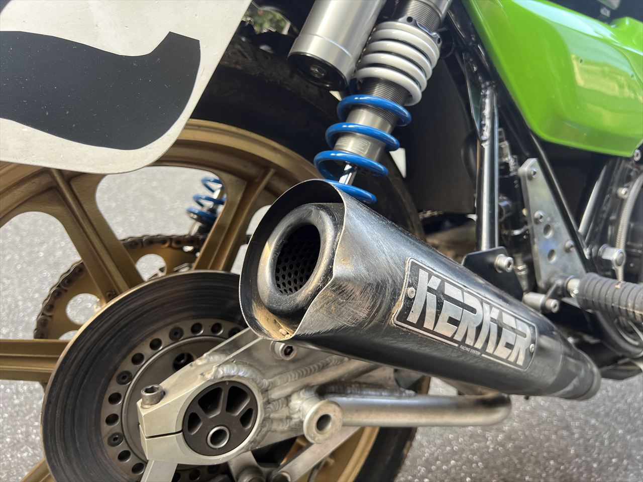 マフラーエンドは大きく潰れています。このくらいならバッフルを外して板金修理できそうです。