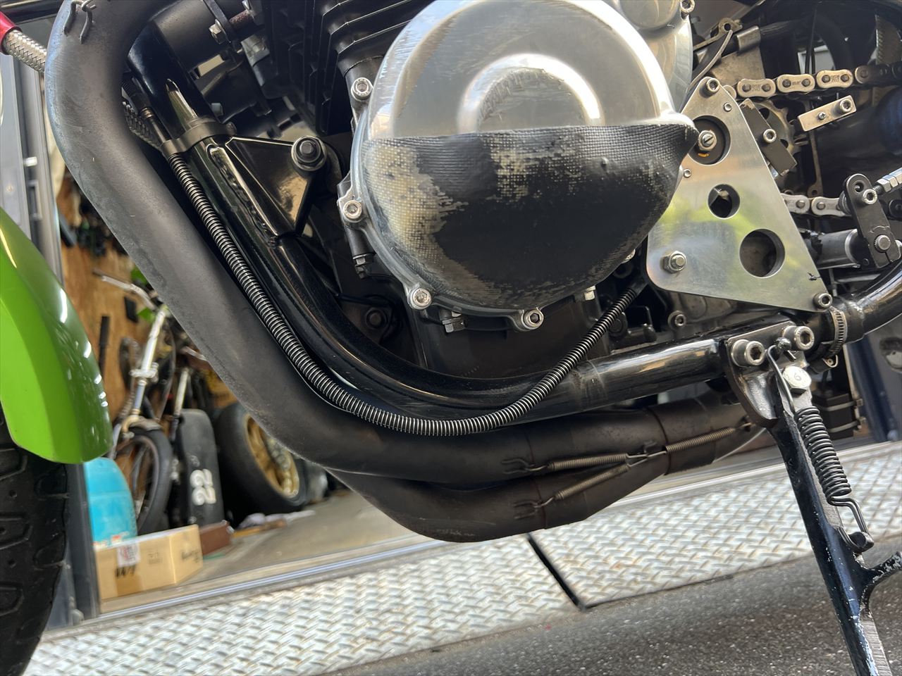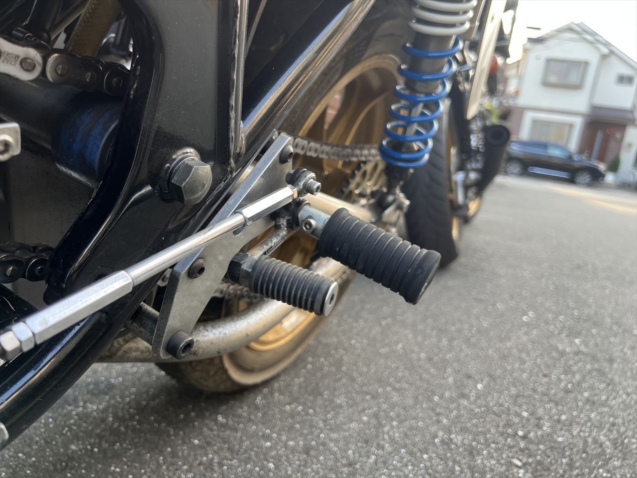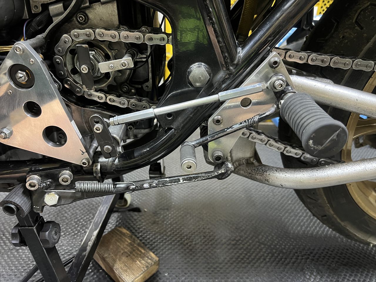 よく見るとチェンジペダルが曲がっています。スチール製なので、曲げなおせば修復可能でしょう。