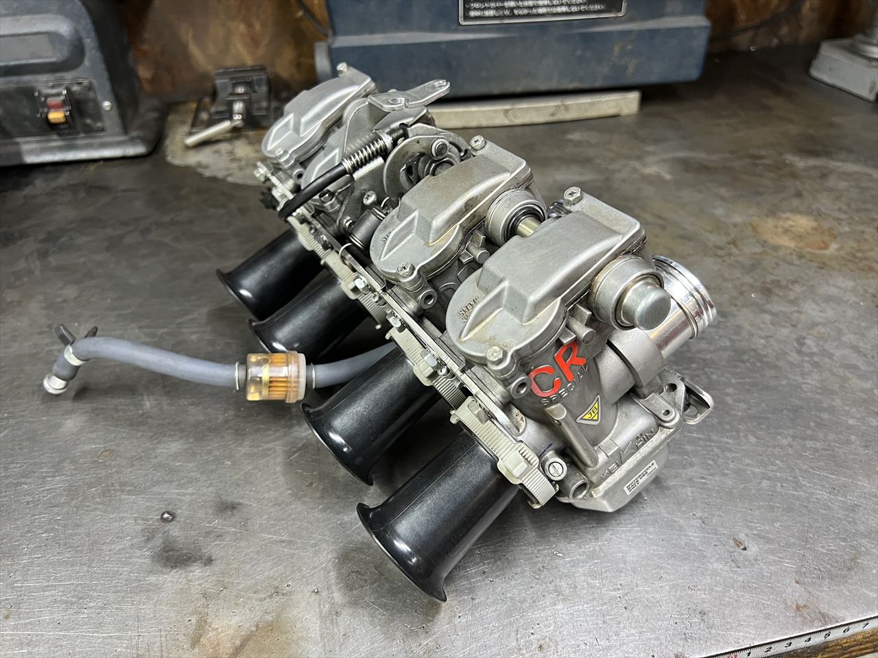 キャブを外してグラベルの土や砂利を吸い込んでいないか点検します。