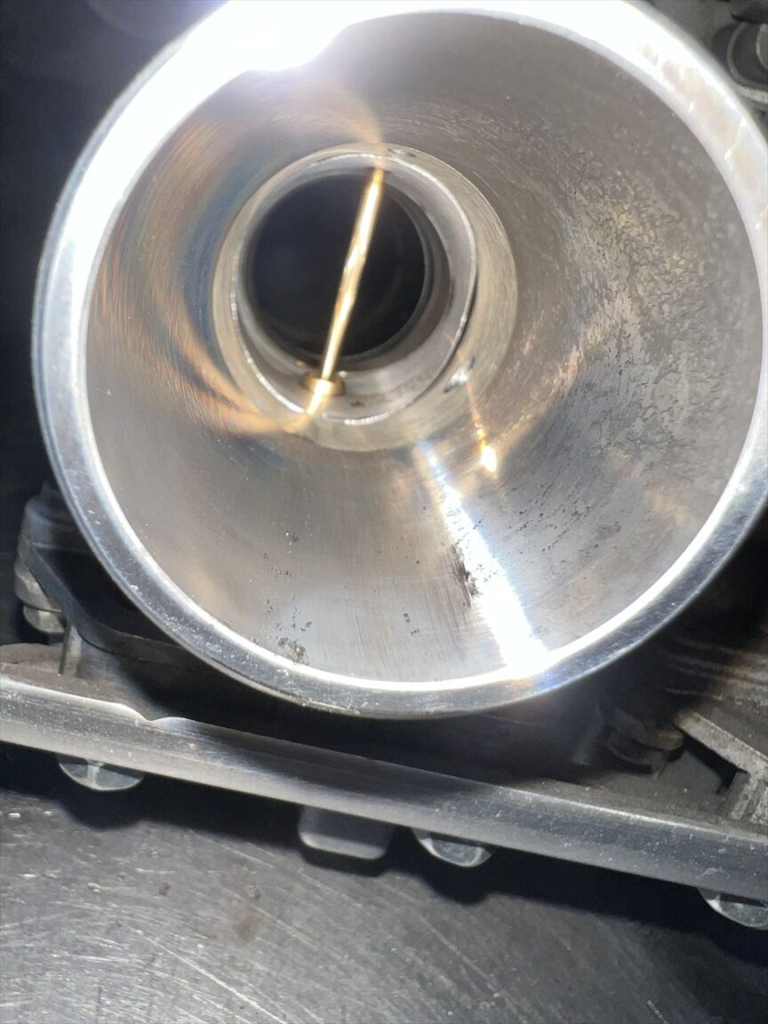 スロットルバルブのエンジン側に、極わずかな土の粒がいくつかありました。