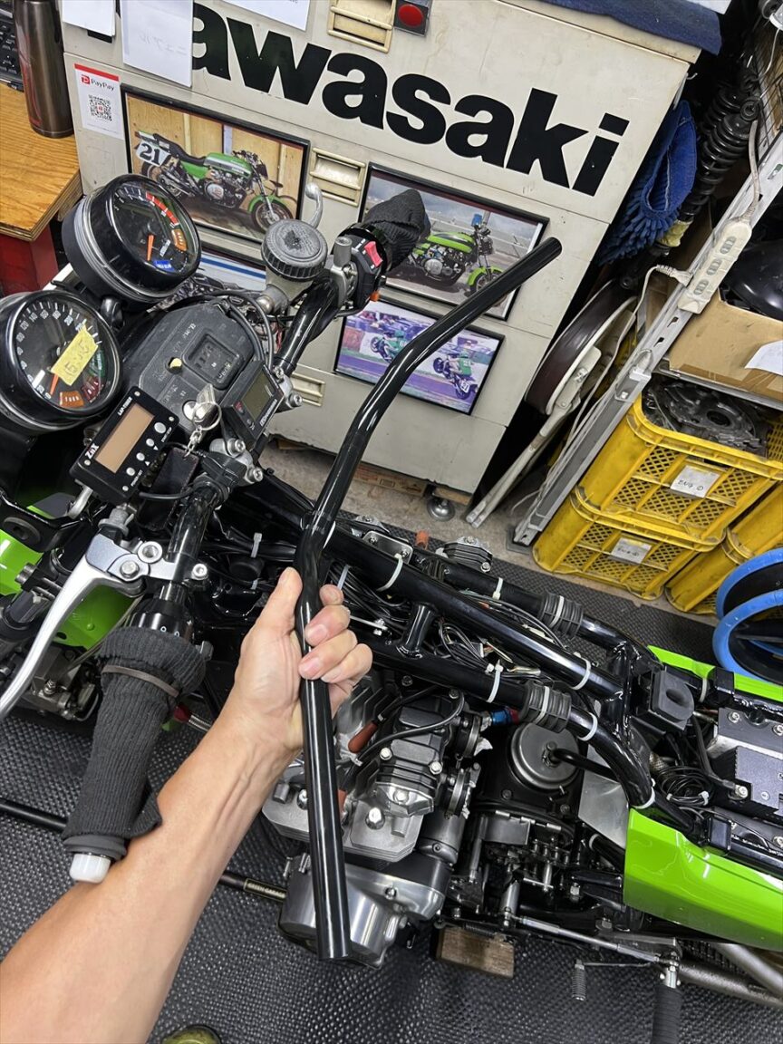 続いてハンドル交換です。使用していたのはAREA製スーパーバイクハンドルです。今回も同じものに交換します。